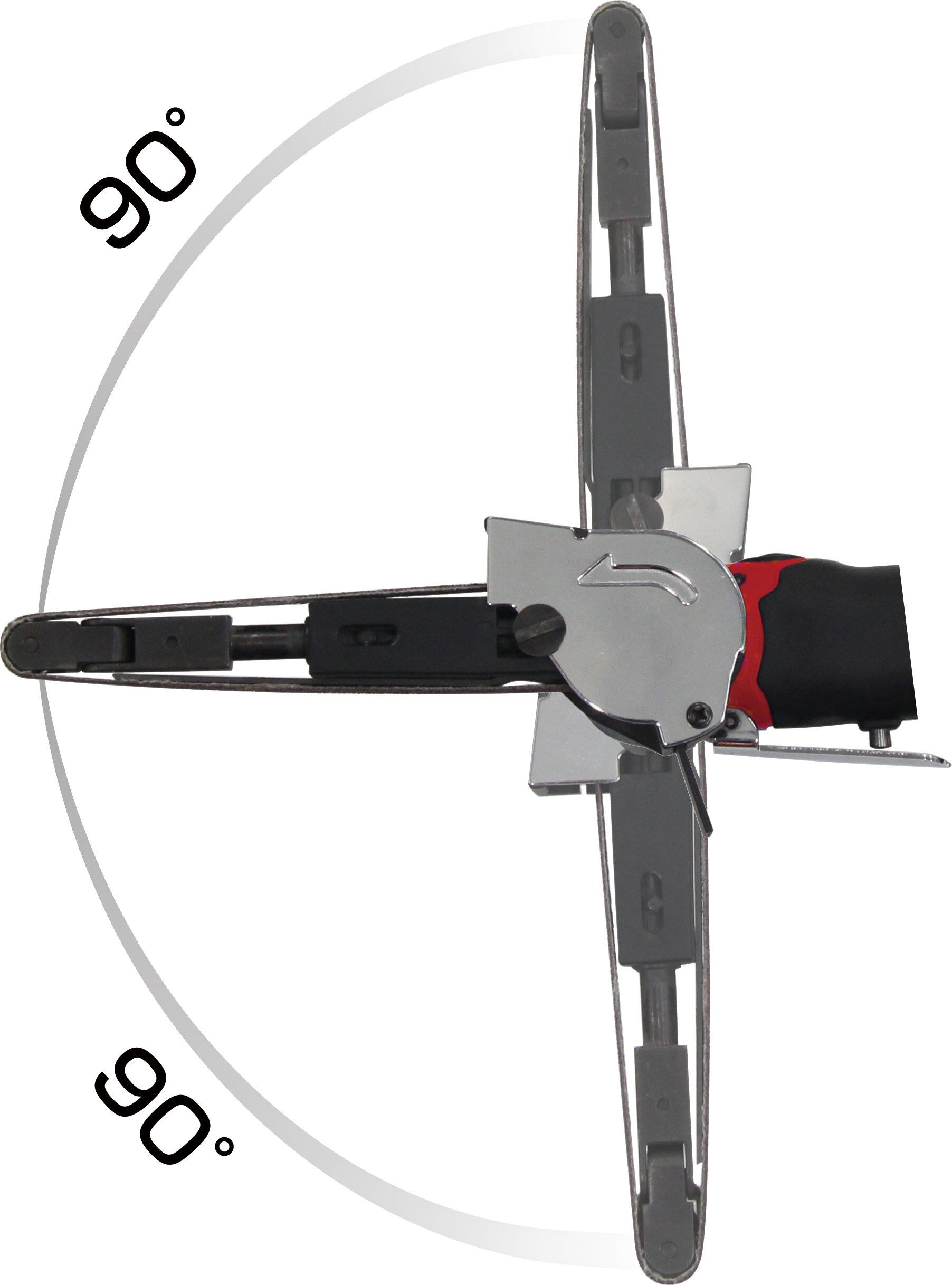 工具不要のワンタッチでベルト交換が可能。作業用途に合わせてアームの角度を上下90度首振できます。
