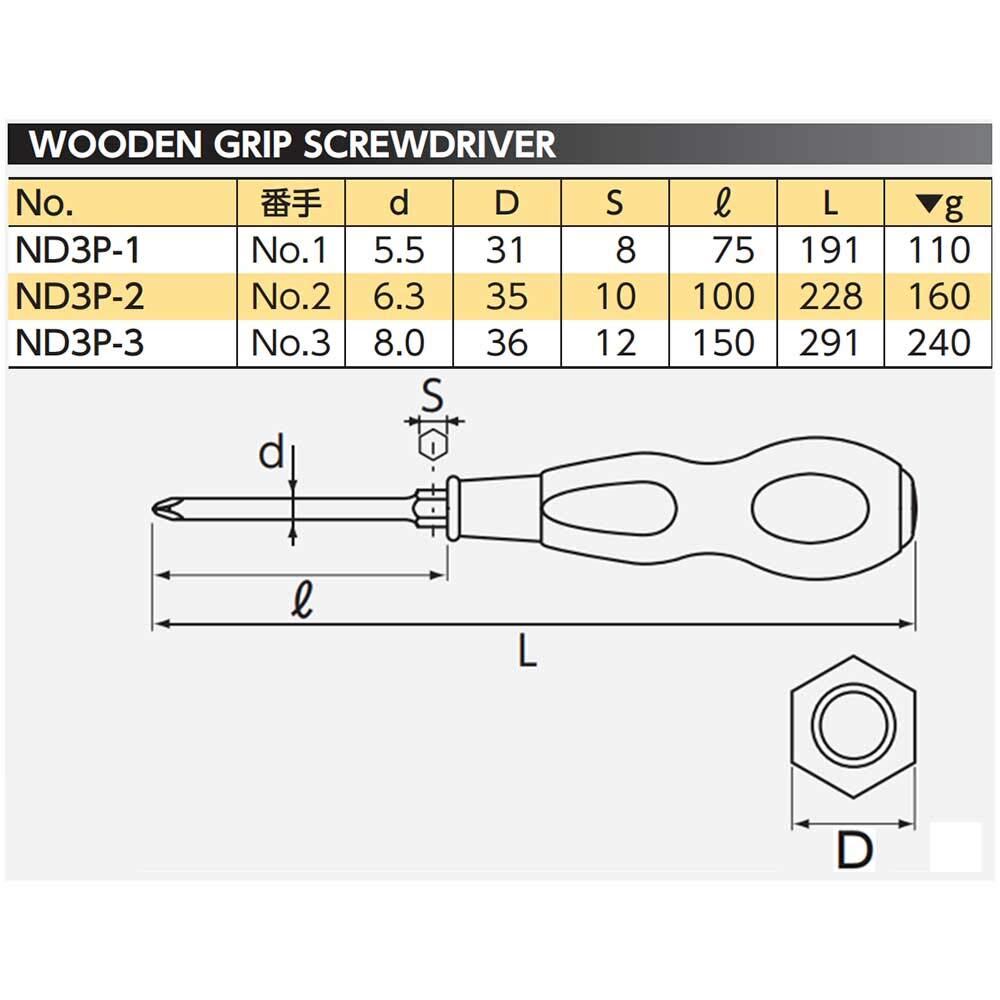 京都機械工具(KTC) ネプロス 木柄ドライバー ND3P-2