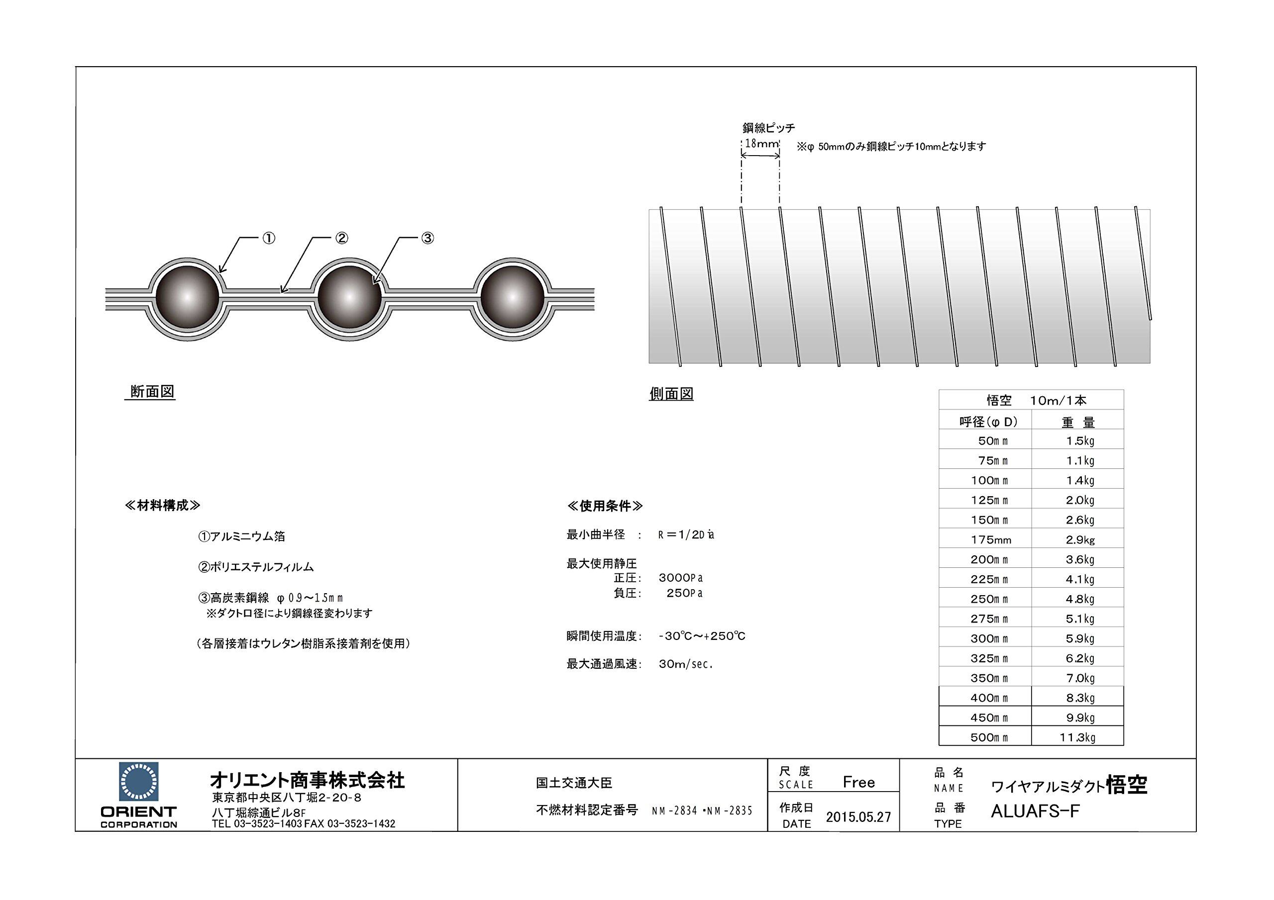 オリエント商事 ワイヤアルミダクト 悟空 φ100×10m
