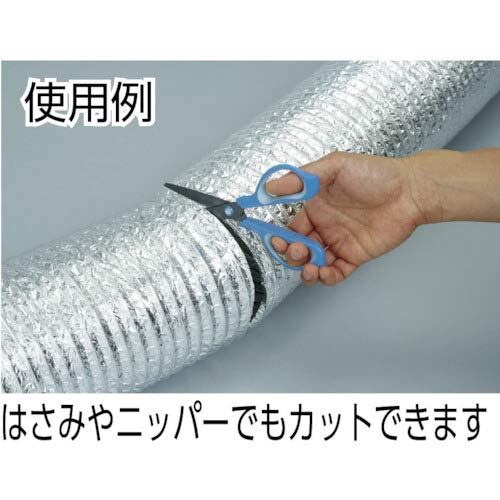 高炭素鋼線が狭いピッチでらせん状に入っていますので型くずれを防ぎます。アルミ箔3層・ポリエステルフィルム2層の特殊ラミネート構造により、優れた耐久性と気密性のほか、UV耐性も備えております。