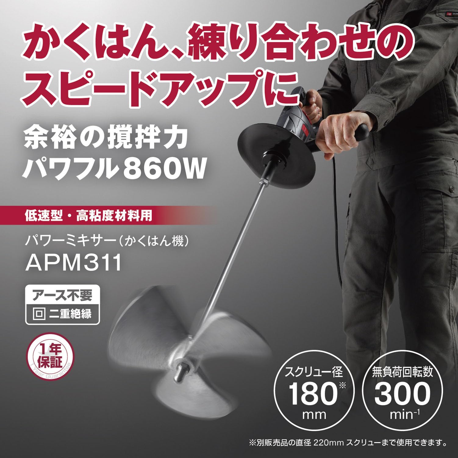 【限定特価】京セラ(Kyocera) 旧リョービ プロ用 パワーミキサー APM311 640750A ブラック 【リシン・プラスター・漆喰・せんい壁のかくはんに最適】 スクリュー180mm 回転数300min-1 低速型 高粘度材料用 860W | ももくま屋さん