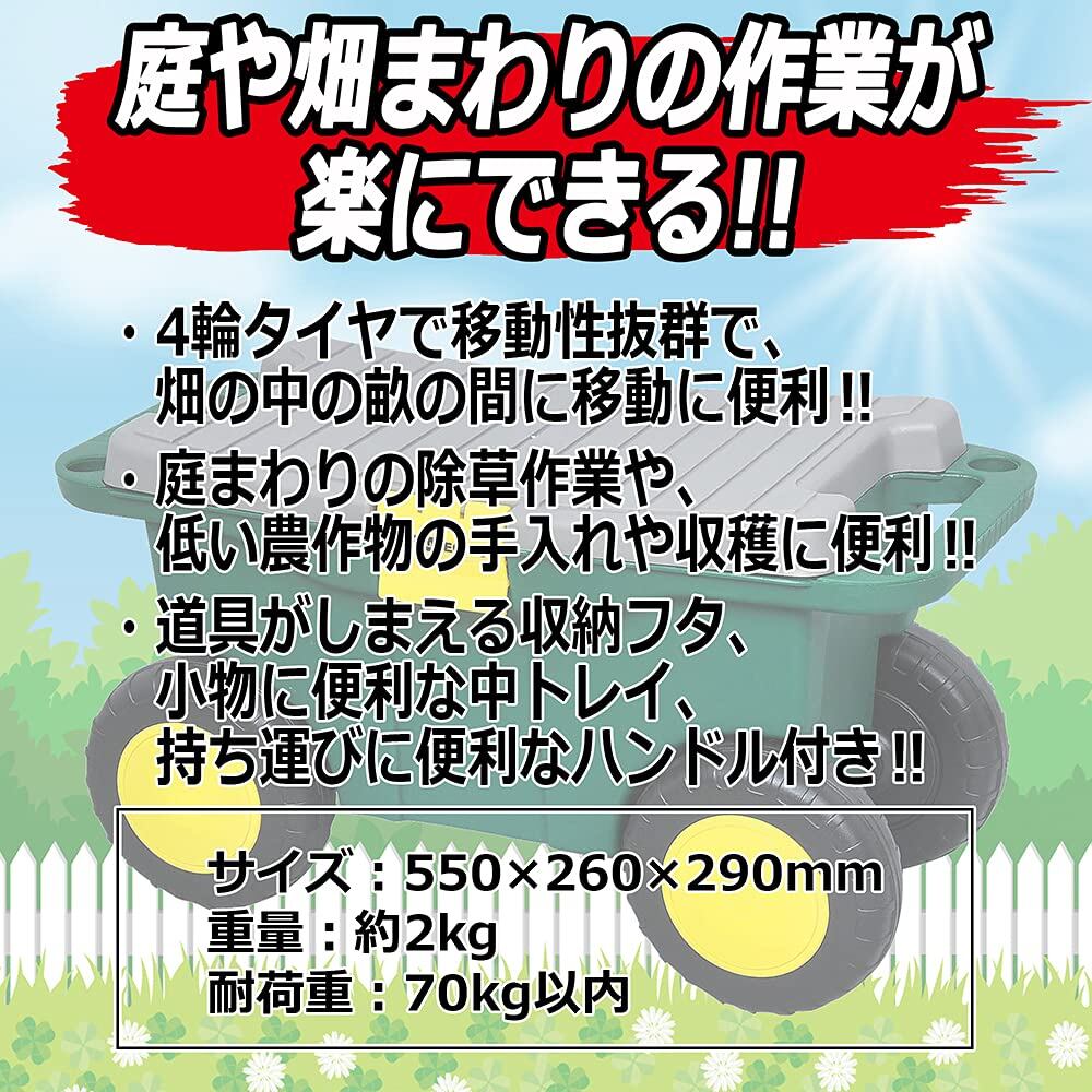 4輪タイヤで移動性抜群で、畑の中の畝の間に移動に便利です。