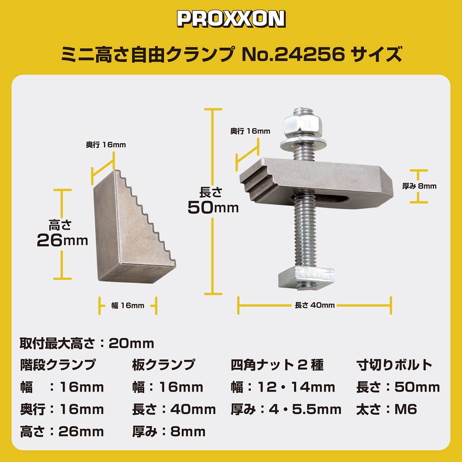 プロクソン(PROXXON) ミニ高さ自由クランプ 【取り付け最大高さ20mm】 No.24256