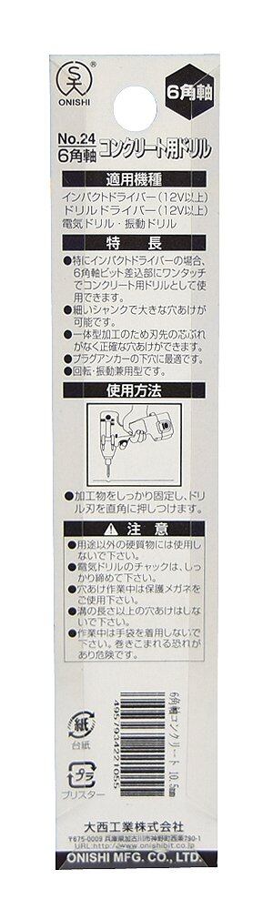 【大特価セール】大西工業(Onishi Kogyo) 6角軸コンクリート用ドリル(NO.24) 10.5mm