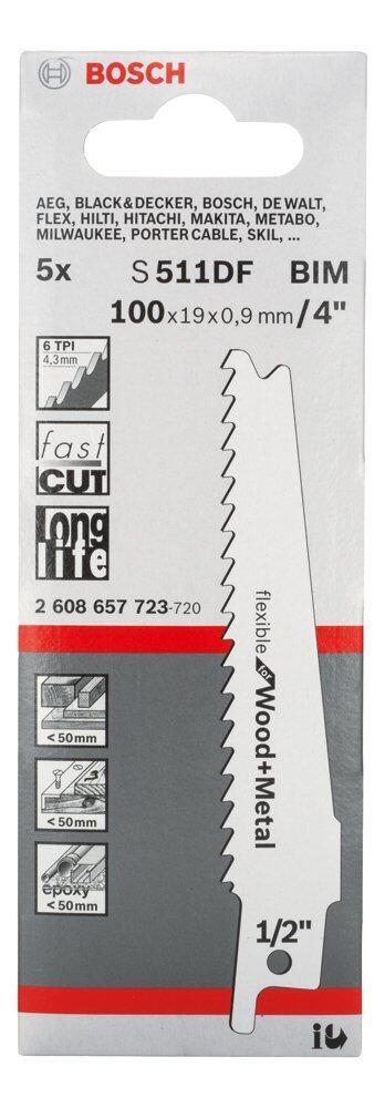 【新装セール】BOSCH(ボッシュ) 木材&金属用セーバーソーブレード5本組 S511DF