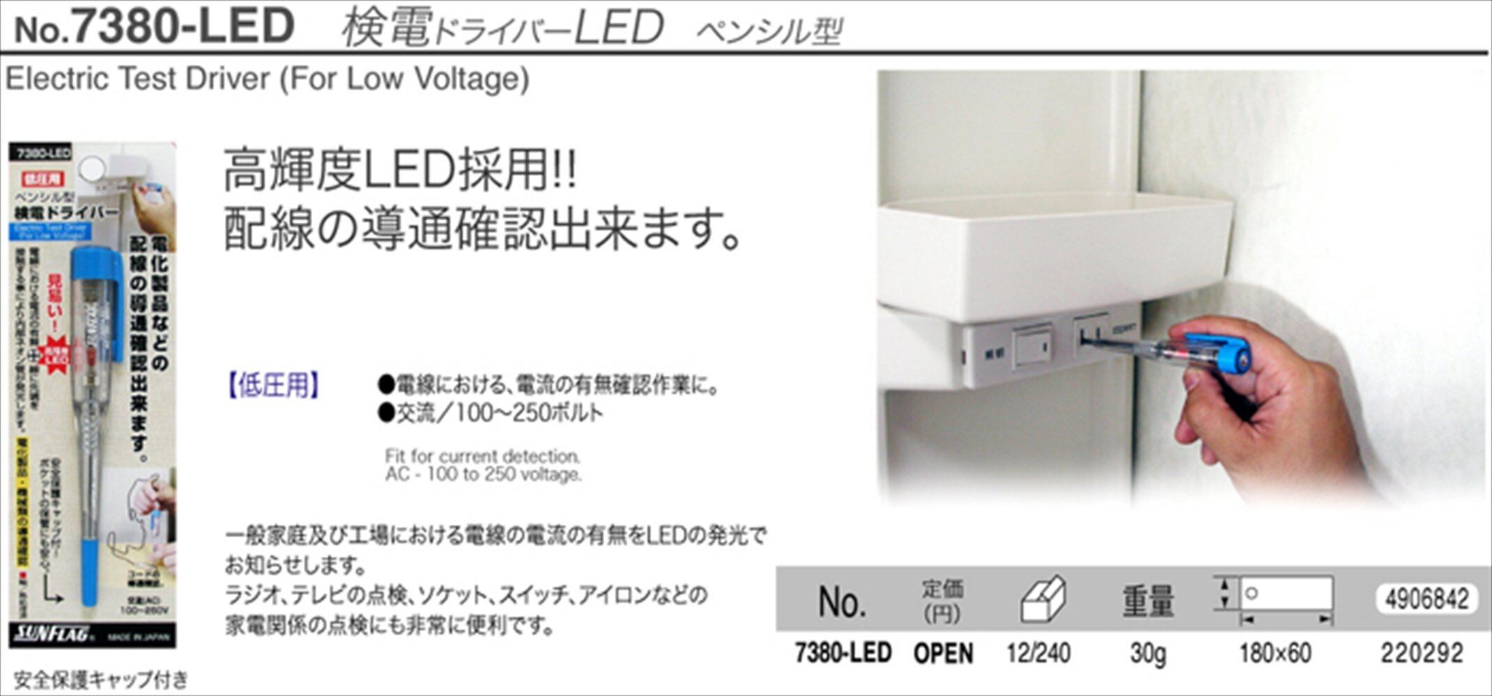 【大特価商品】サンフラッグ(SUNFRAG) 検電ドライバーLED ペンシル型 No.7380-LED