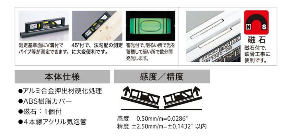 建築・土木・DIYなど幅広い分野で高い信頼の"エビスの水平器・レベル" 磁石付ディレクターレベル