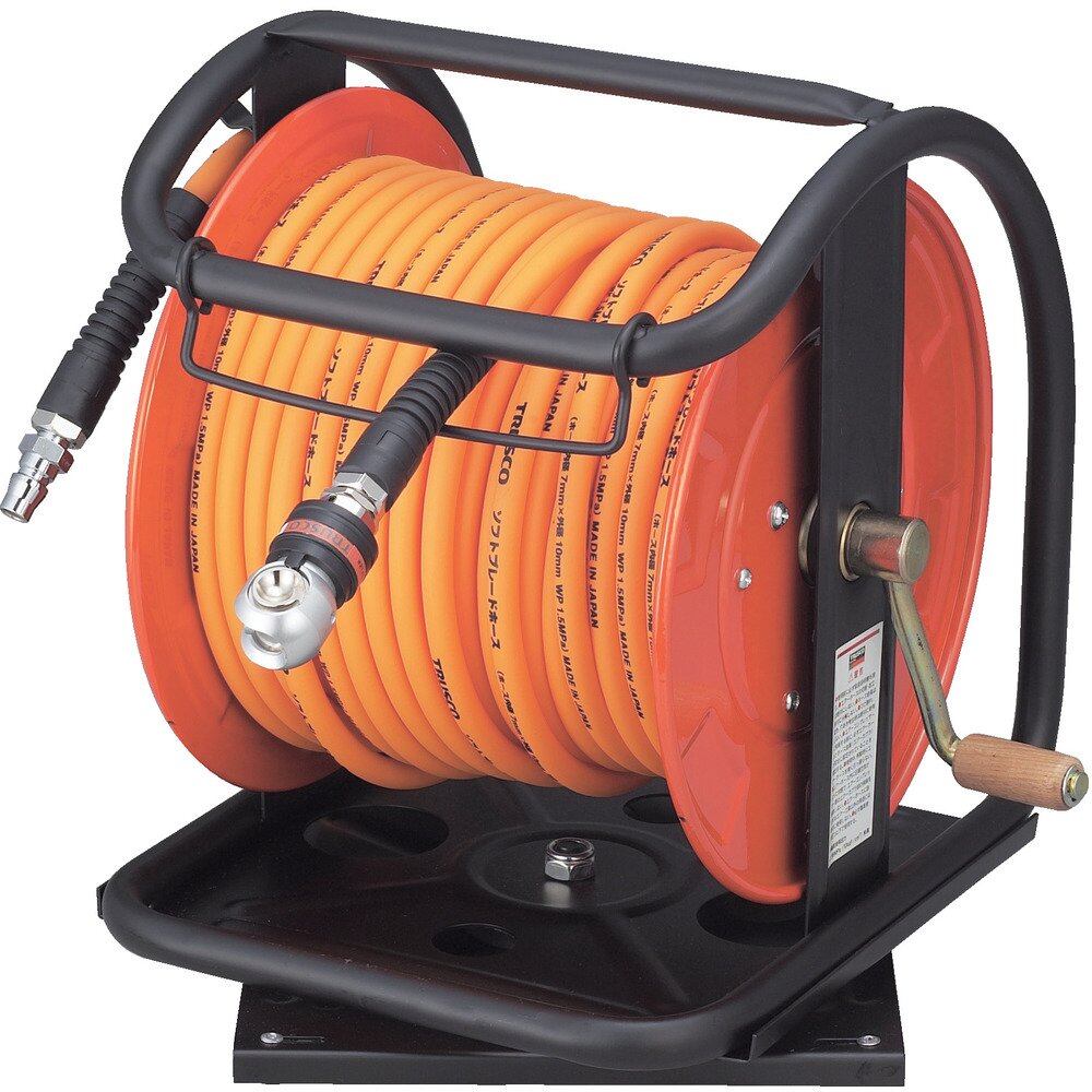 ●一次側ホース長さ:1m●使用流体:空気●使用温度範囲:-10~60℃●使用圧力:1.5MPa●転倒しにくい回転台付きで優れた安定感です。●巻き取りハンドルは折りたたみ式収納タイプです。●一般カップリングに接続できます。(一部を除く)●超ソフトタイプで作業性に優れています。