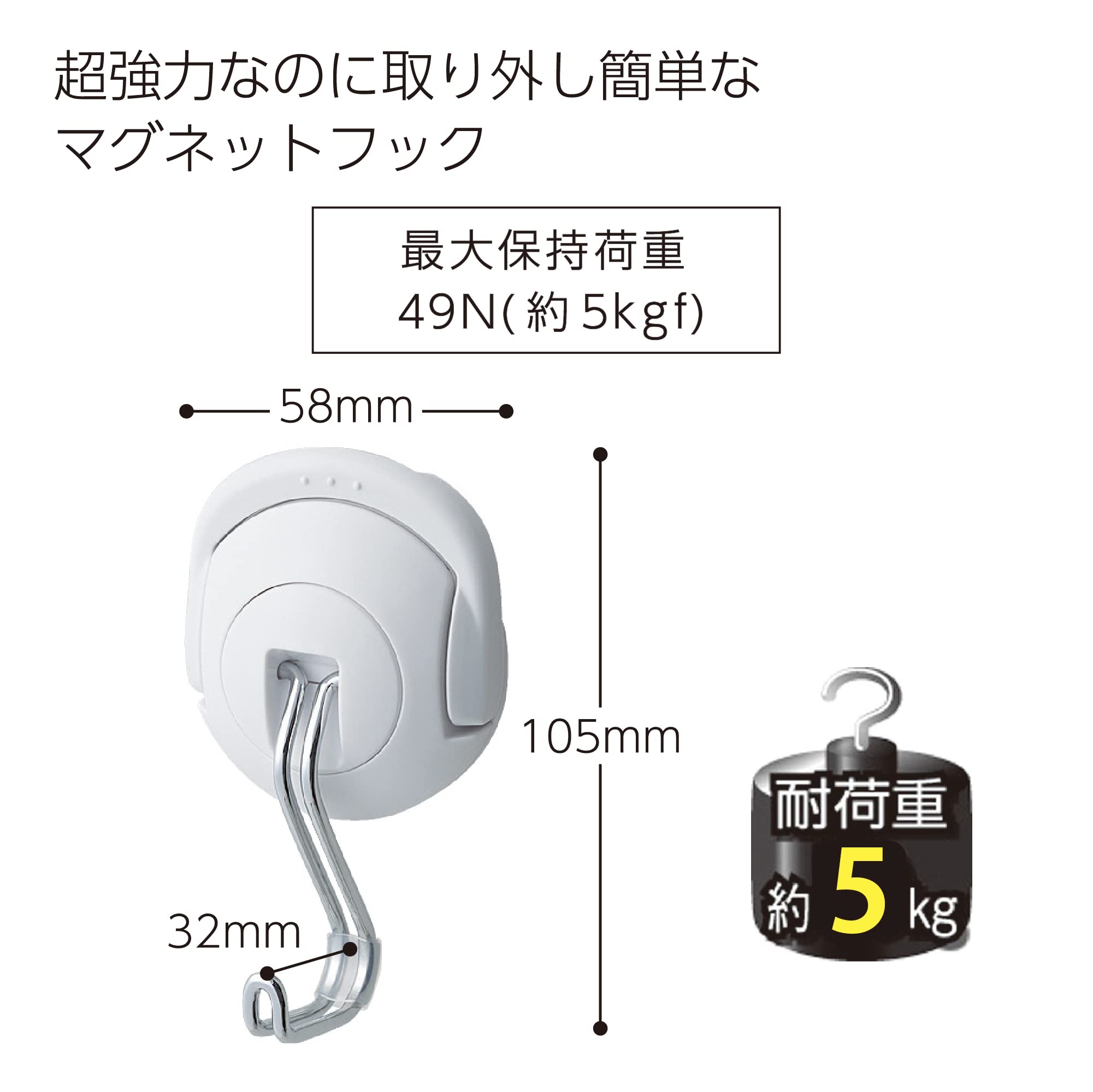 【最大保持荷重】 約5kgf(49N) 【カラー】 白