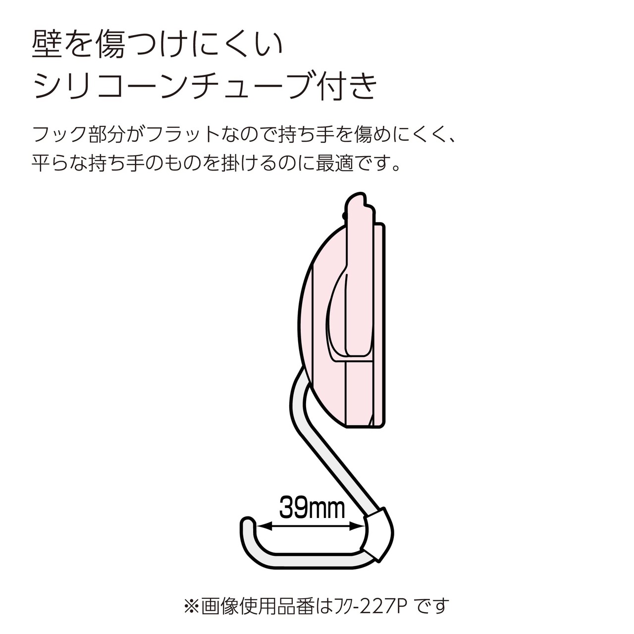 ・平らな持ち手のものを掛けるのに適したフック形状です。
