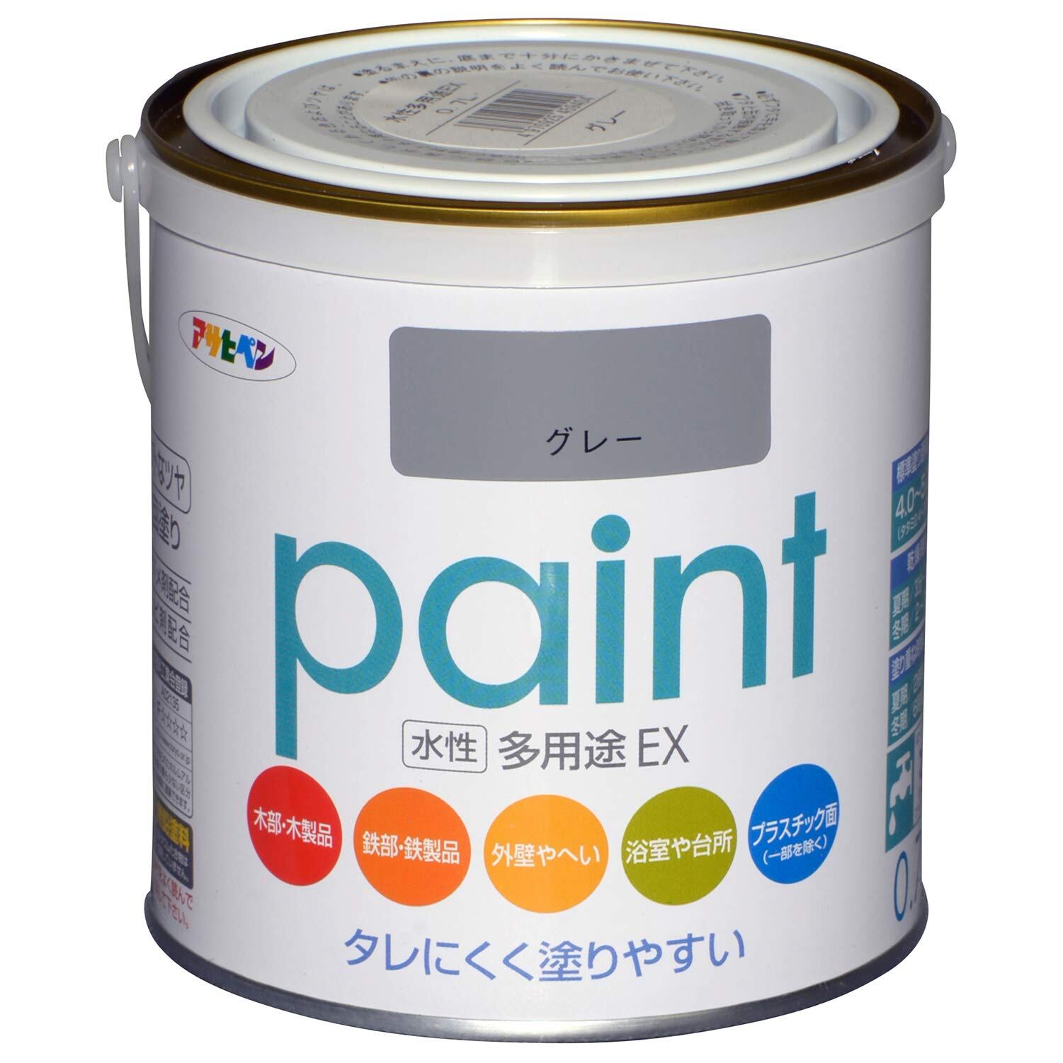 アサヒペン 塗料 ペンキ 水性多用途EX 0.7L グレー 水性 多用途 半ツヤ ソフトなツヤ 低臭 防カビ サビドメ剤配合 タレにくく塗りやすい シックハウス対策品 日本製