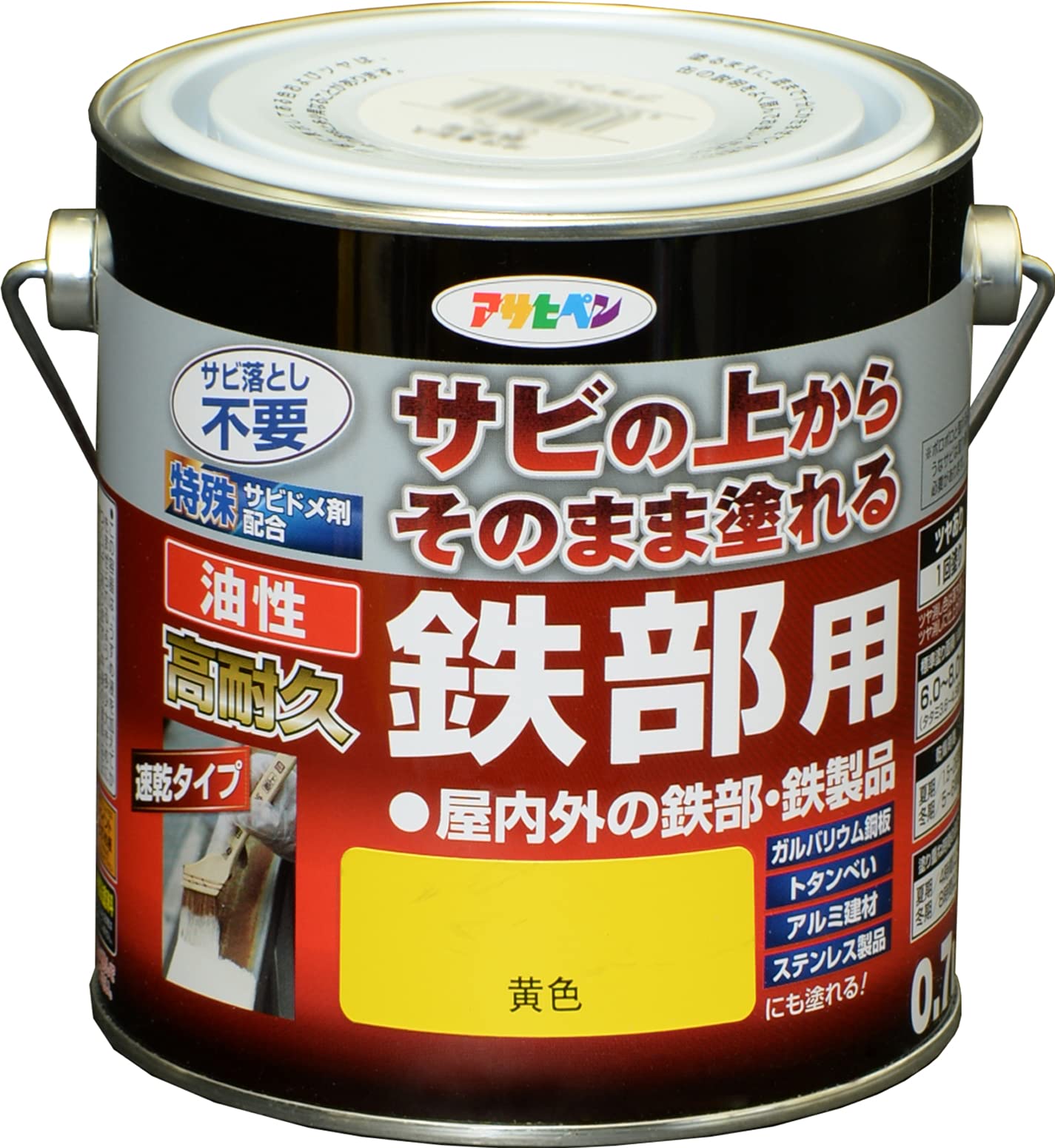 アサヒペン 塗料 ペンキ 油性高耐久鉄部用 0.7L 黄色 油性 サビの上からそのまま塗れる ツヤあり 1回塗り 高密着性 耐候性 日本製