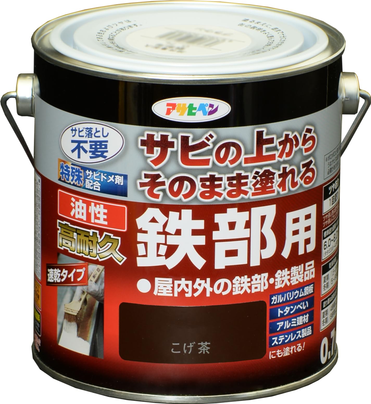アサヒペン 塗料 ペンキ 油性高耐久鉄部用 0.7L こげ茶 油性 サビの上からそのまま塗れる ツヤあり 1回塗り 高密着性 耐候性 日本製