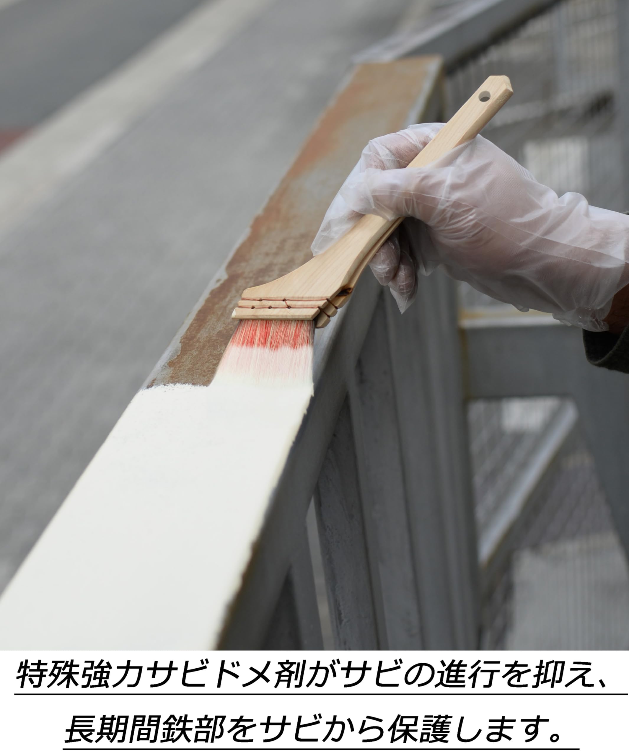特殊防錆剤の配合により、サビを落とさずサビの上から直接塗れます。