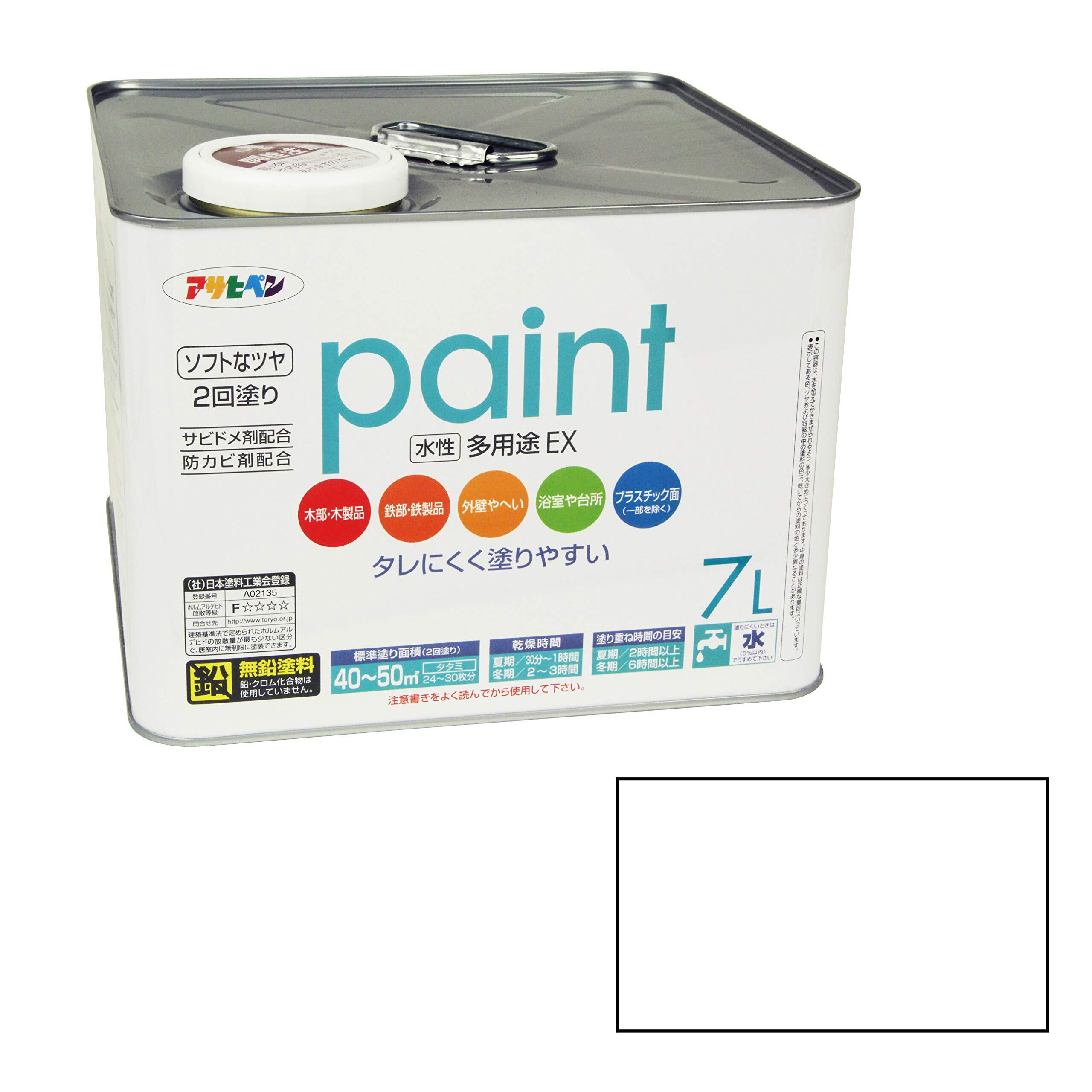 【最新商品】アサヒペン 塗料 ペンキ 水性多用途EX 7L 白 水性 多用途 半ツヤ ソフトなツヤ 低臭 防カビ サビドメ剤配合 タレにくく塗りやすい シックハウス対策品 日本製