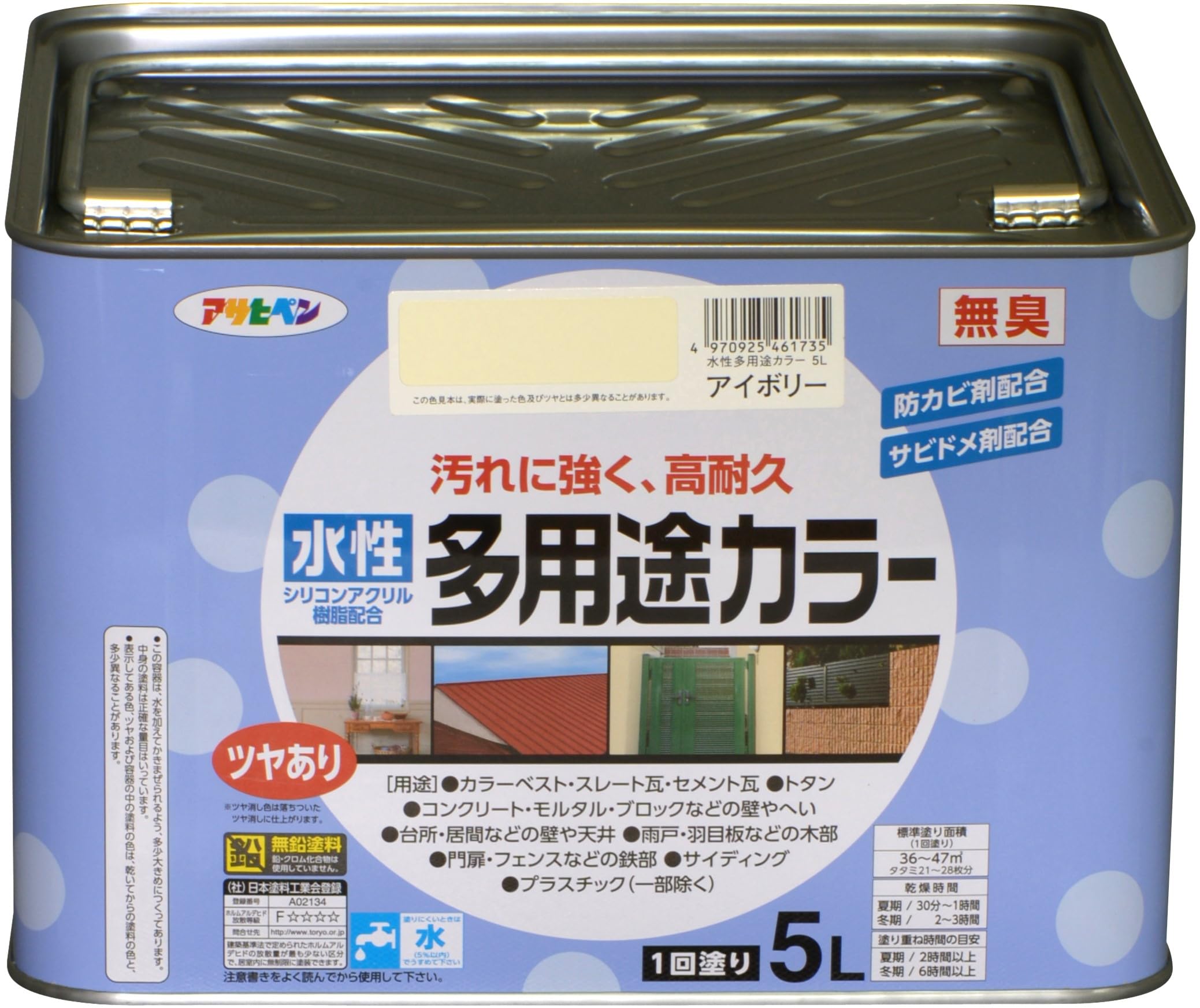 アサヒペン 塗料 ペンキ 水性多用途カラー 5L アイボリー 水性 多用途 ツヤあり 1回塗り 高耐久 汚れに強い 無臭 防カビ サビドメ剤配合 シックハウス対策品 日本製