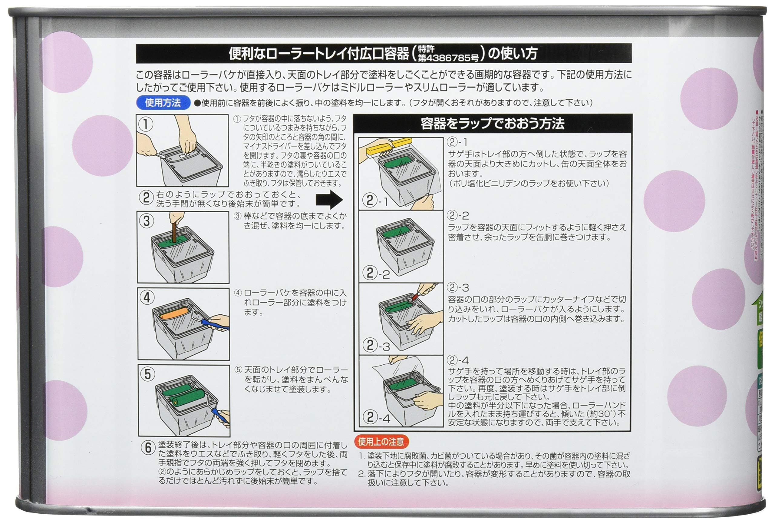 用途:(屋内外区分:屋内用)●リビング、寝室、子供部屋などの室内壁や天井(カベ紙・ビニールカベ紙)。●窓枠などの木部。●和室壁や天井(しっくい壁・京壁・土壁・砂壁・せんい壁・コンクリート・モルタル)。●浴室、キッチン、洗面所、トイレなどの壁や天井。
