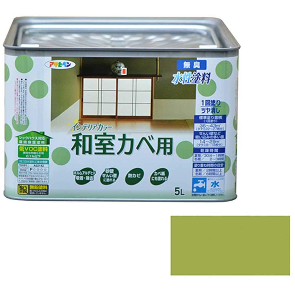 アサヒペン 塗料 ペンキ NEW水性インテリアカラー和室カベ 5L うぐいす色 水性 室内 壁用 艶消し 1回塗り 無臭 防カビ 低VOC シックハウス対策品 日本製