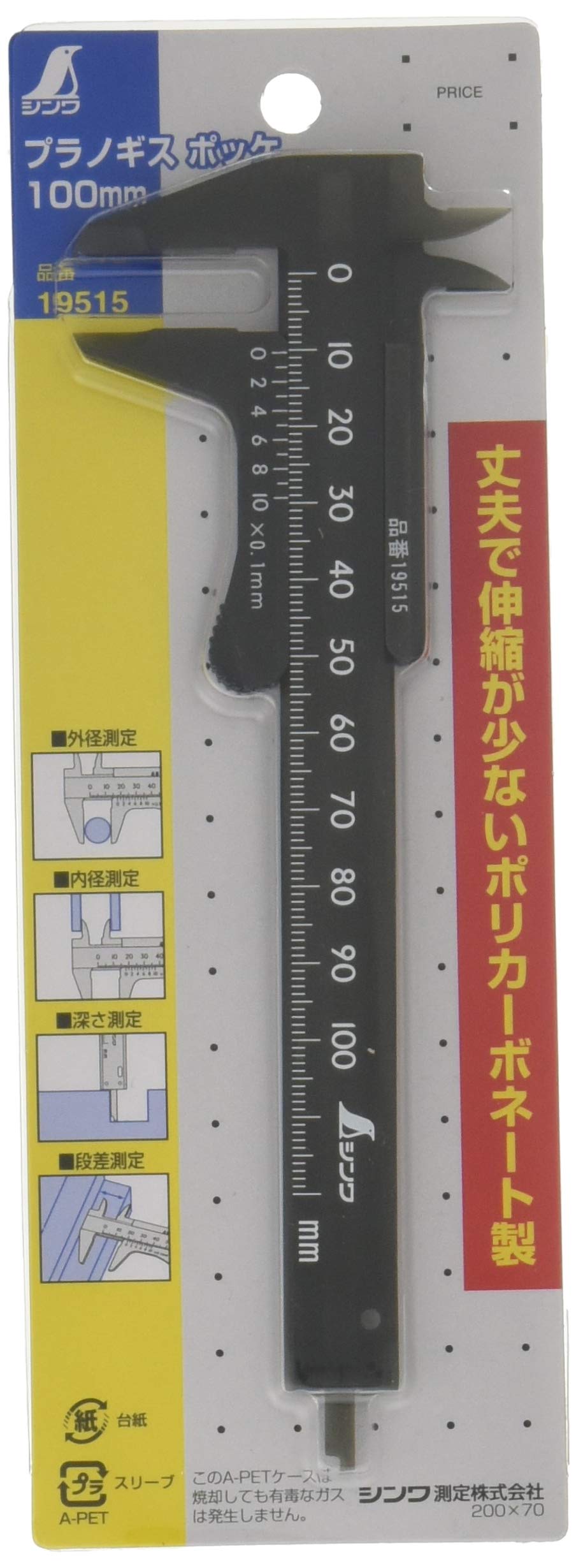 シンワ測定(Shinwa Sokutei) プラスチックノギス ポッケ 100mm 19515