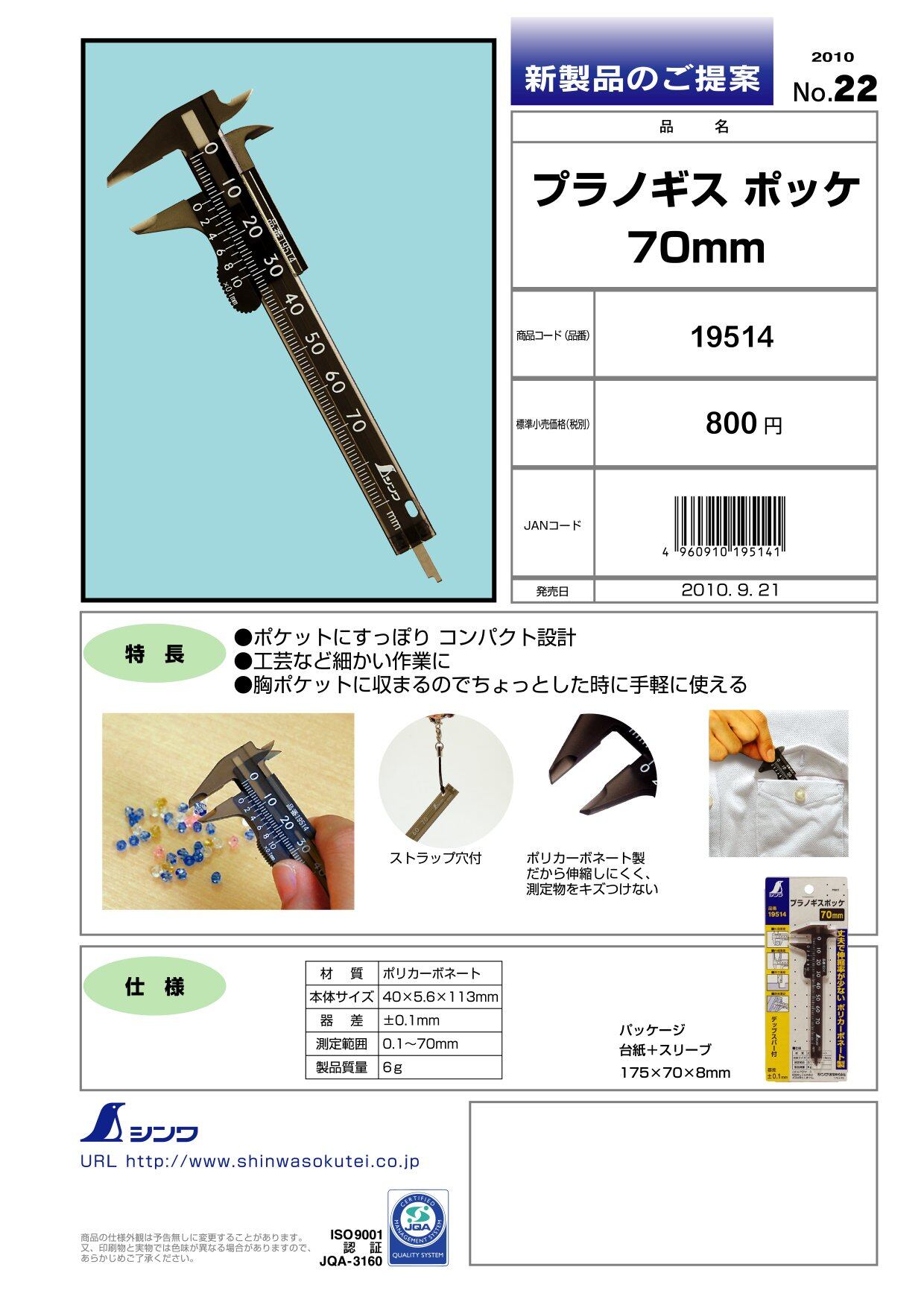 【新装セール】シンワ測定(Shinwa Sokutei) プラスチックノギス ポッケ 70mm 19514