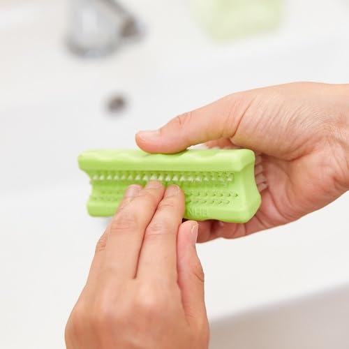 ●上部:爪や指先の汚れ落とし。●底部:手のひらや手の甲等の汚れ落とし。●握りやすいフィット感のある形状です。●上部のアーチ植毛部分が爪の間の汚れ落としに効果的です。●カビなどが付きにくいポリプロピレン(PP)を台の素材として採用しています。