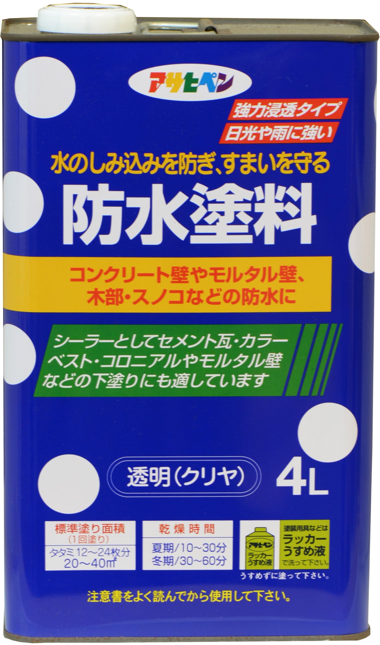 アサヒペン 塗料 ペンキ 防水塗料 4L 透明 クリヤ 油性 防水塗料 強力浸透 ツヤあり 1回塗り 外壁 日本製