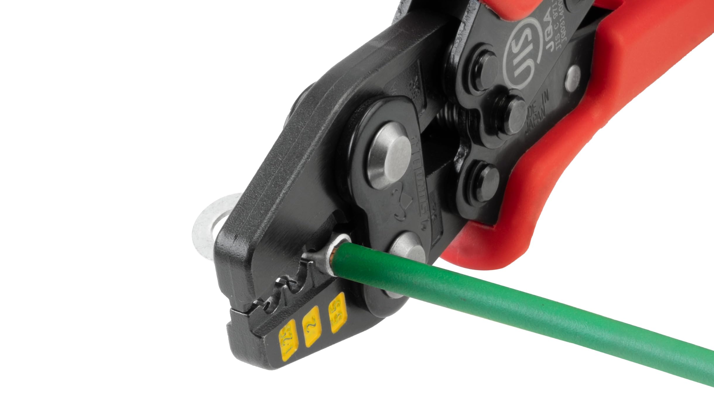 JIS C 9711認証取得品。裸圧着端子・スリーブ用(端子サイズ1.25・2・5.5)。二重テコによる倍力効果で圧着時の負担を軽減。業界No.1の小ささながら構造力学計算による軽い圧着を実現。日本製。