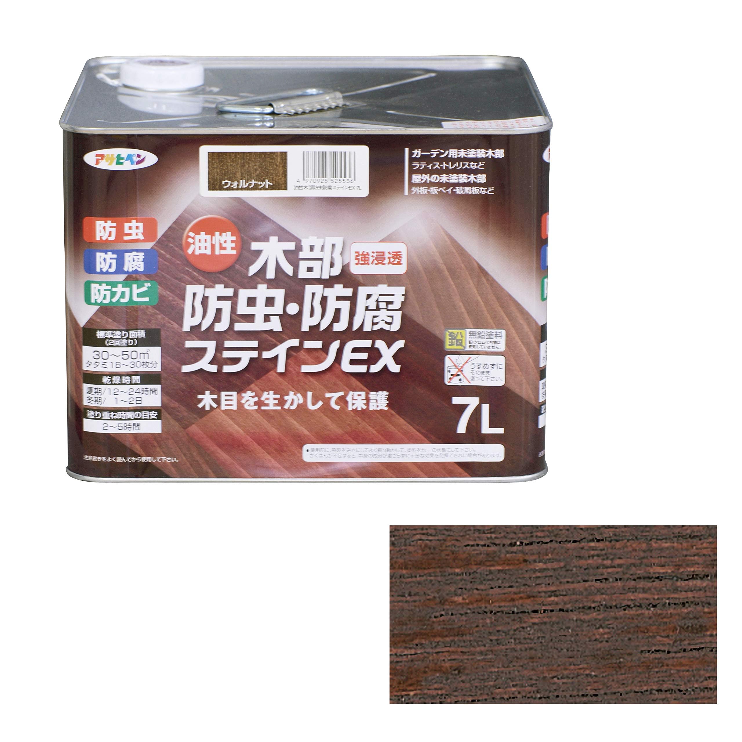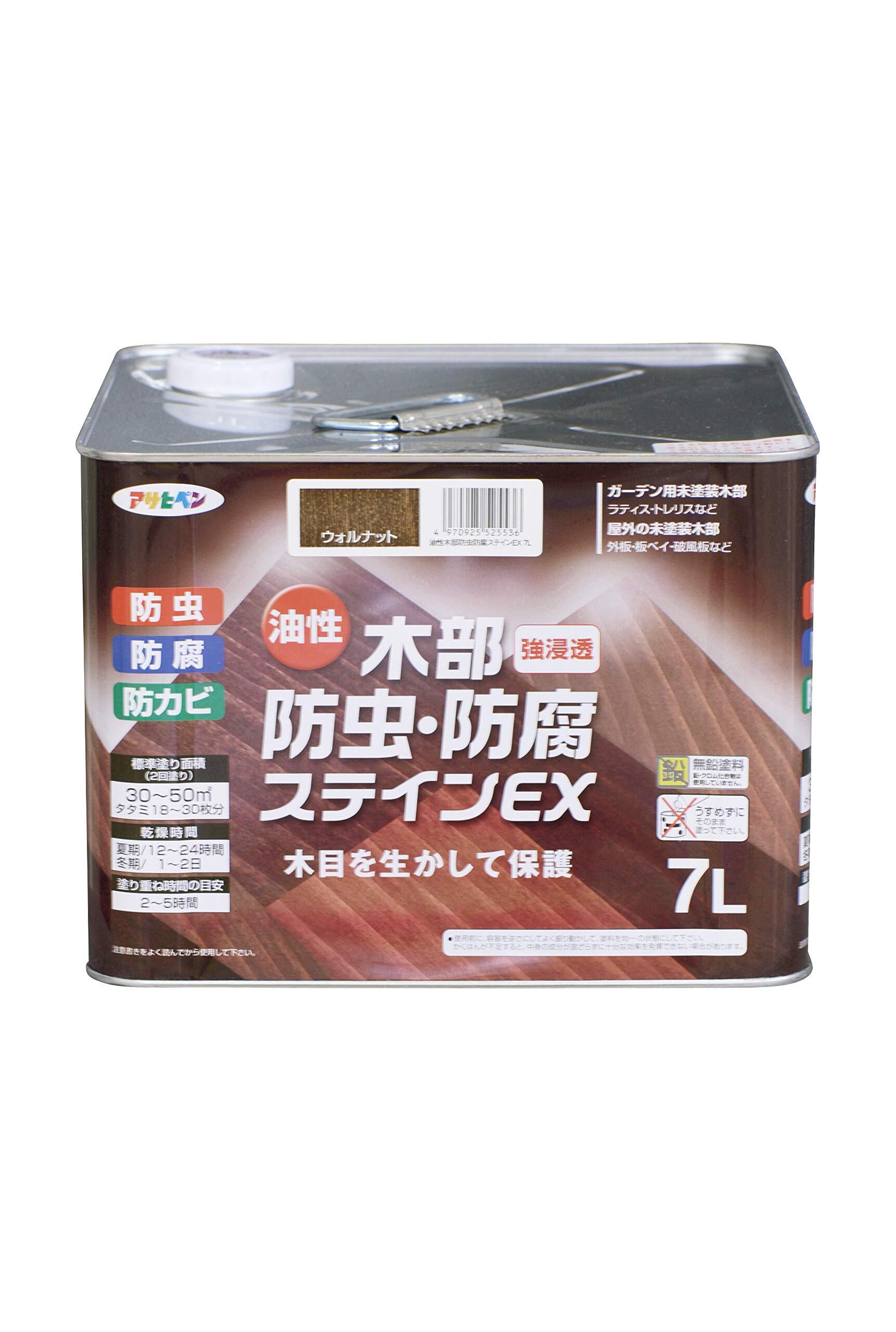 アサヒペン 塗料 ペンキ 油性木部防虫・防腐ステインEX 7L ウォルナット 油性 木部用 屋外木部の保護 艶消し ステイン仕上げ 防カビ 防虫 防腐 日本製