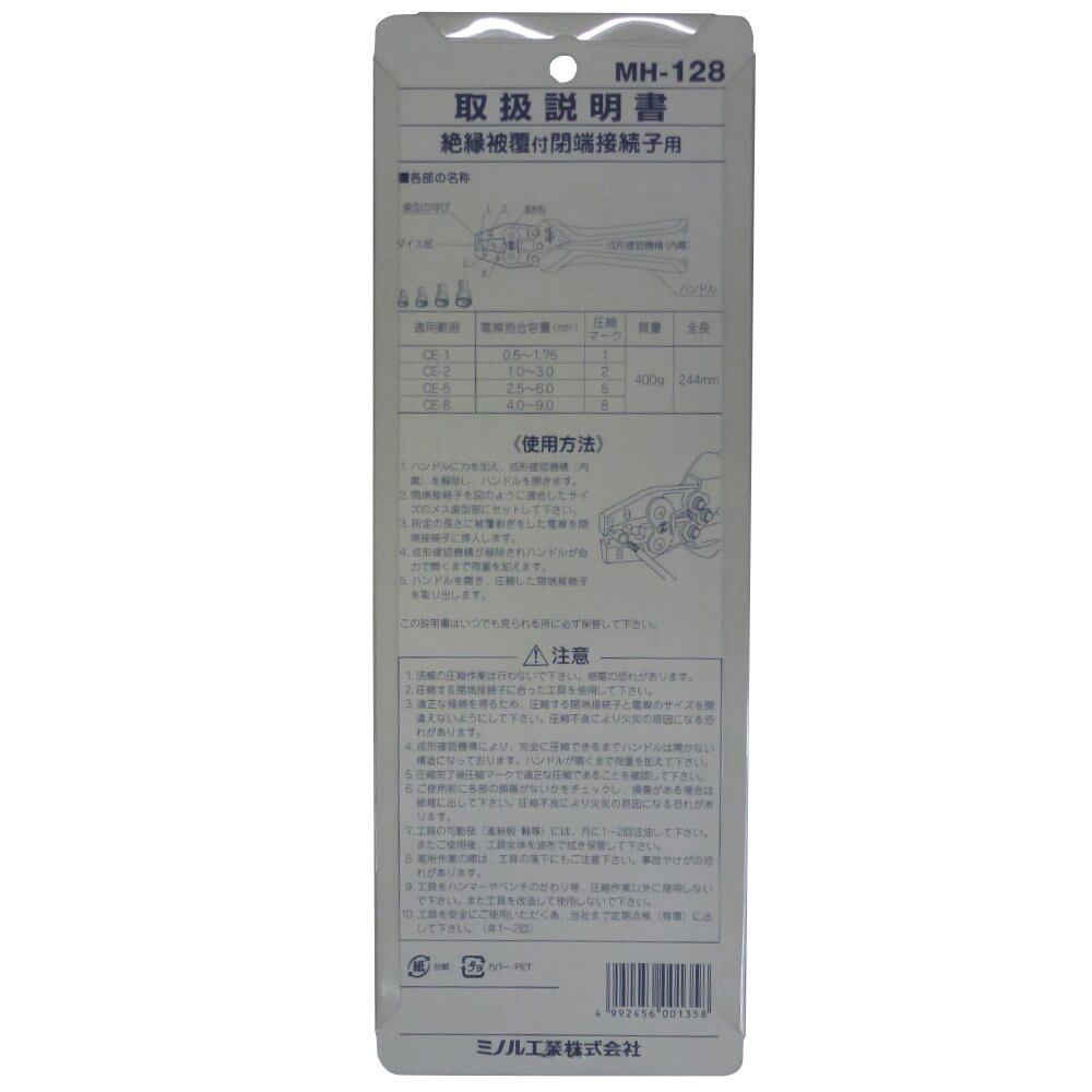 マーベル(MARVEL) 圧着工具 ハンドプレス 絶縁被覆付閉端接続子用 MH-128