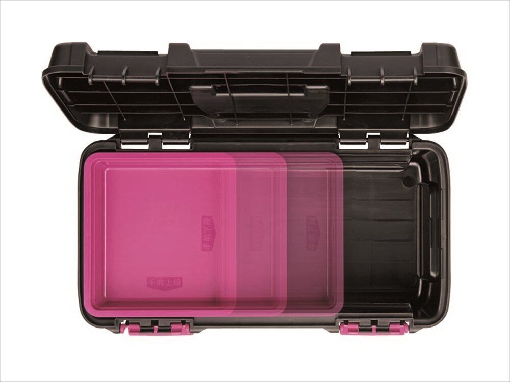 収納物に合わせて中皿を90度回転させれば高さ変更可能。125mmのグラインダー収納可能。