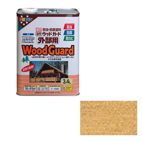 【数量限定】アサヒペン 塗料 ペンキ 油性 ウッドガード 外部用 3.4L クリヤ 01 油性 木部用 屋外木部の保護 艶消し ステイン仕上げ 耐光性 耐水性 防カビ 防虫 防腐 日本製