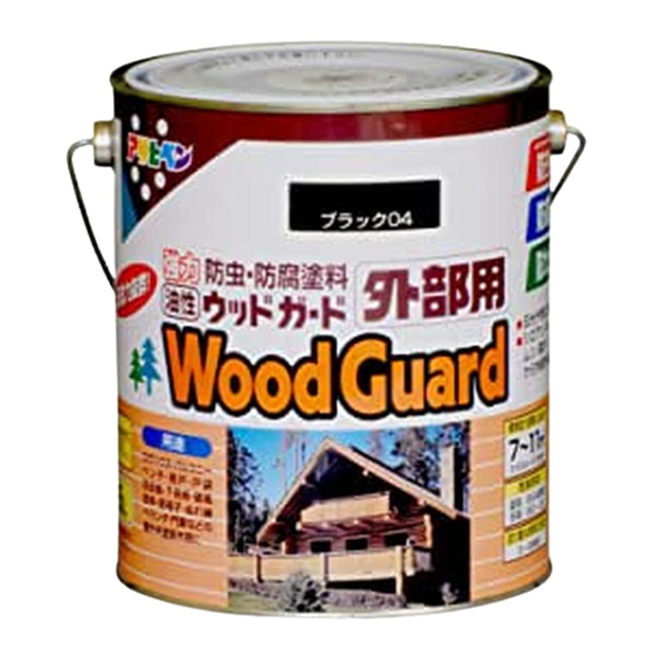 用途:(屋内外区分:屋外用)●ログハウス・ペンション・住宅・倉庫・庭園資材などの屋外未塗装木部。●雨戸、戸袋、羽目板、下見板、板ベイなどの未塗装外板。●窓枠、軒天井、ぬれ縁、門扉などの屋外未塗装木部。