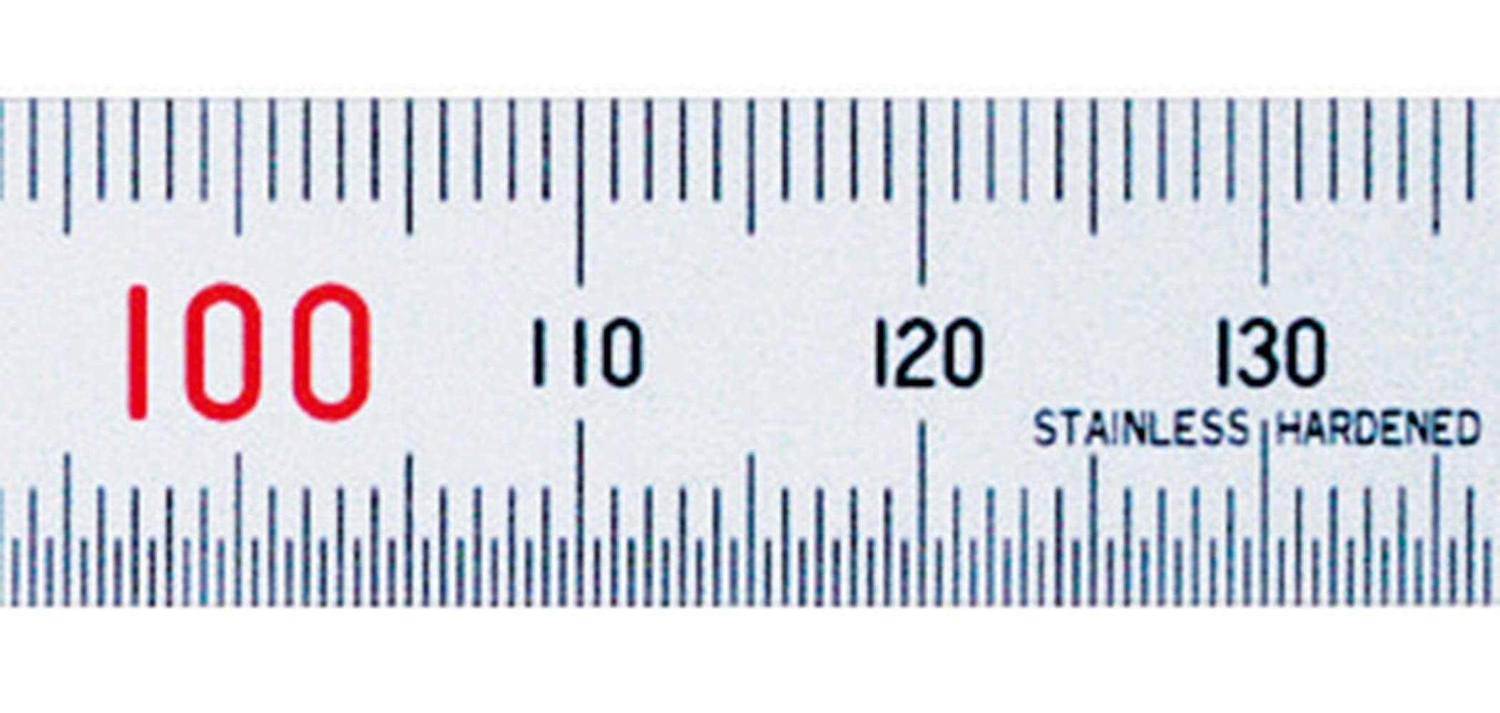 ●ストッパー付<Br>●裏面:インチ換算表<Br>●全長(mm):175<Br>●幅(mm):22<Br>●厚み(mm):5<Br>●呼び寸法(mm):150<Br>●上段(ピッチ):1mm<Br>●下段(ピッチ):0.5mm<Br>●質量(g):20