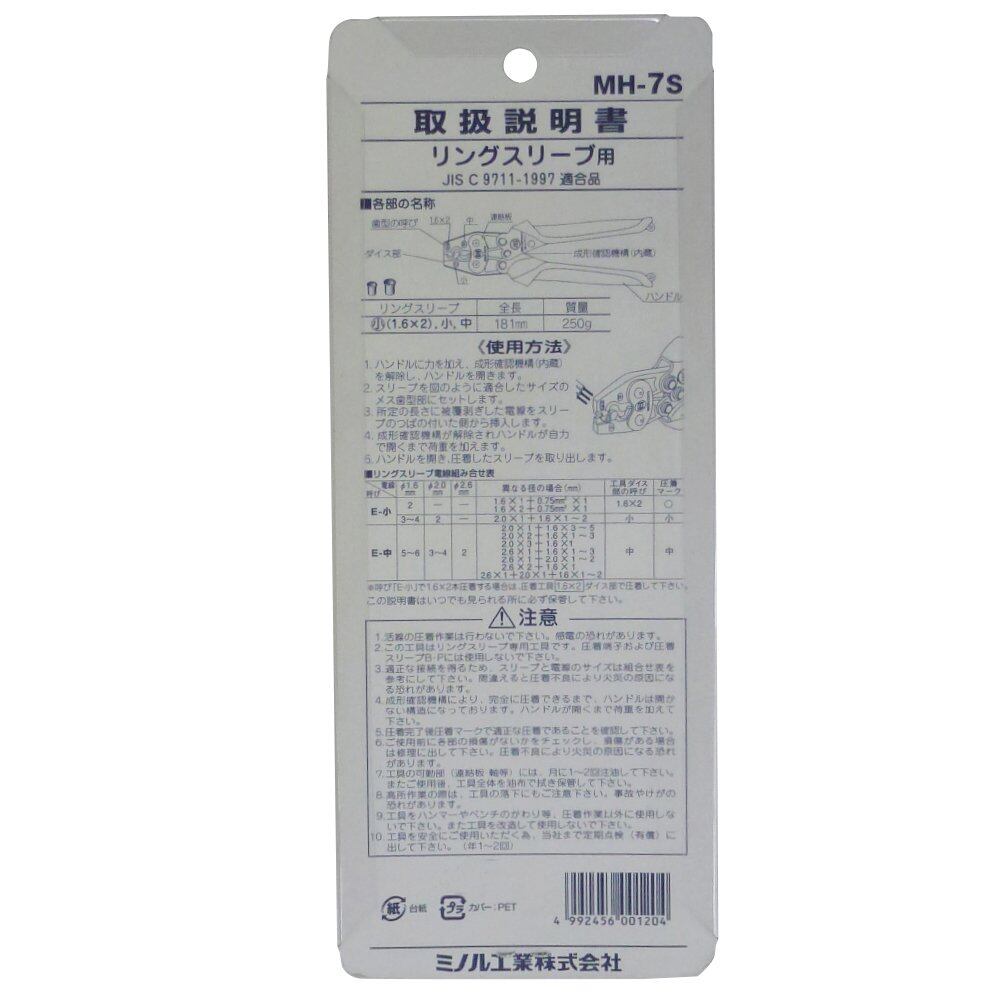 仕様:JIS、圧着マーク、軽量、ミニ、スリーブ仮押さえ