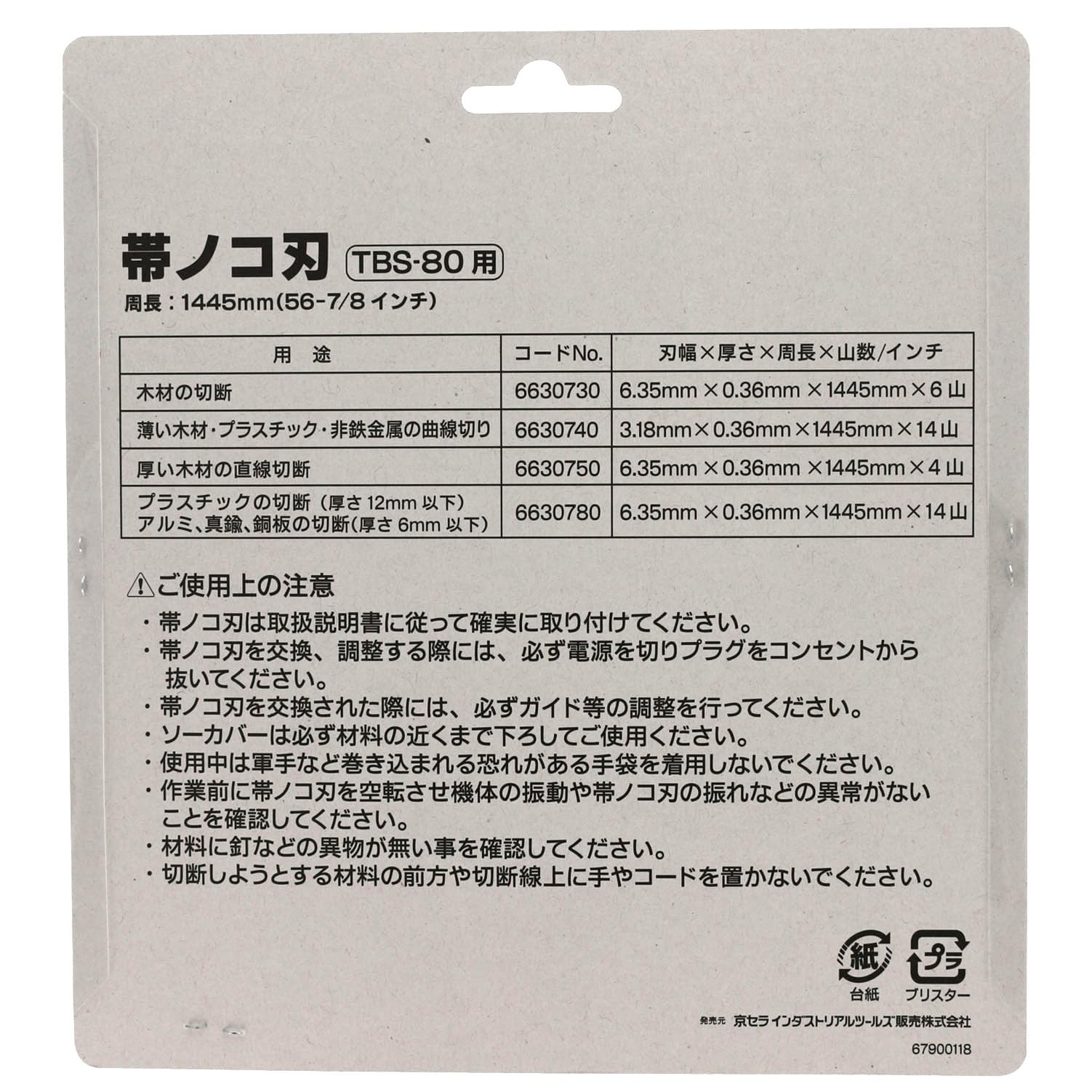 【数量限定】京セラ(Kyocera) 旧リョービ 帯鋸刃 木工厚板用 卓上バンドソー TBS-80用 6630750