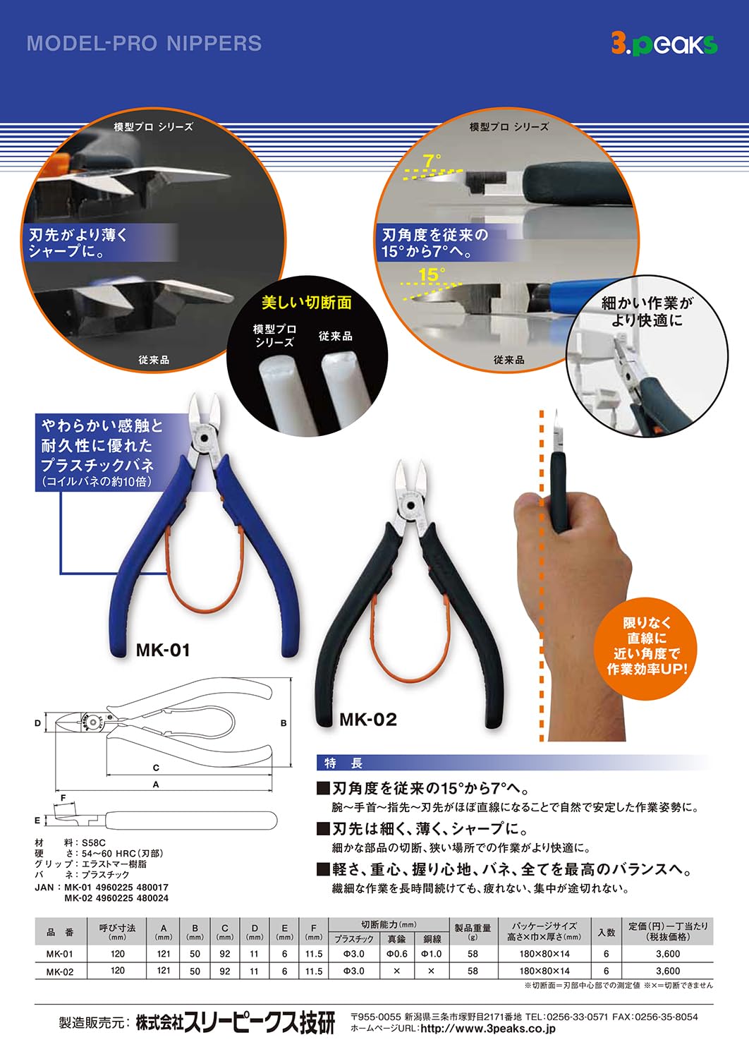 スリーピークス 3.peaks 模型プロ 片刃プラニッパ MK-02 50×121mm