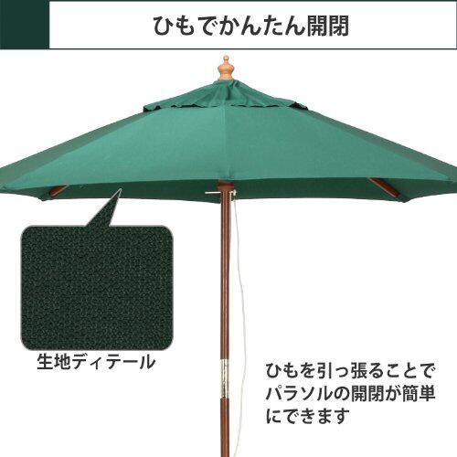 不二貿易 ガーデン パラソル 幅193×奥行193×高さ222㎝ グリーン 日除け 木製 天然木 直径210cm 38696