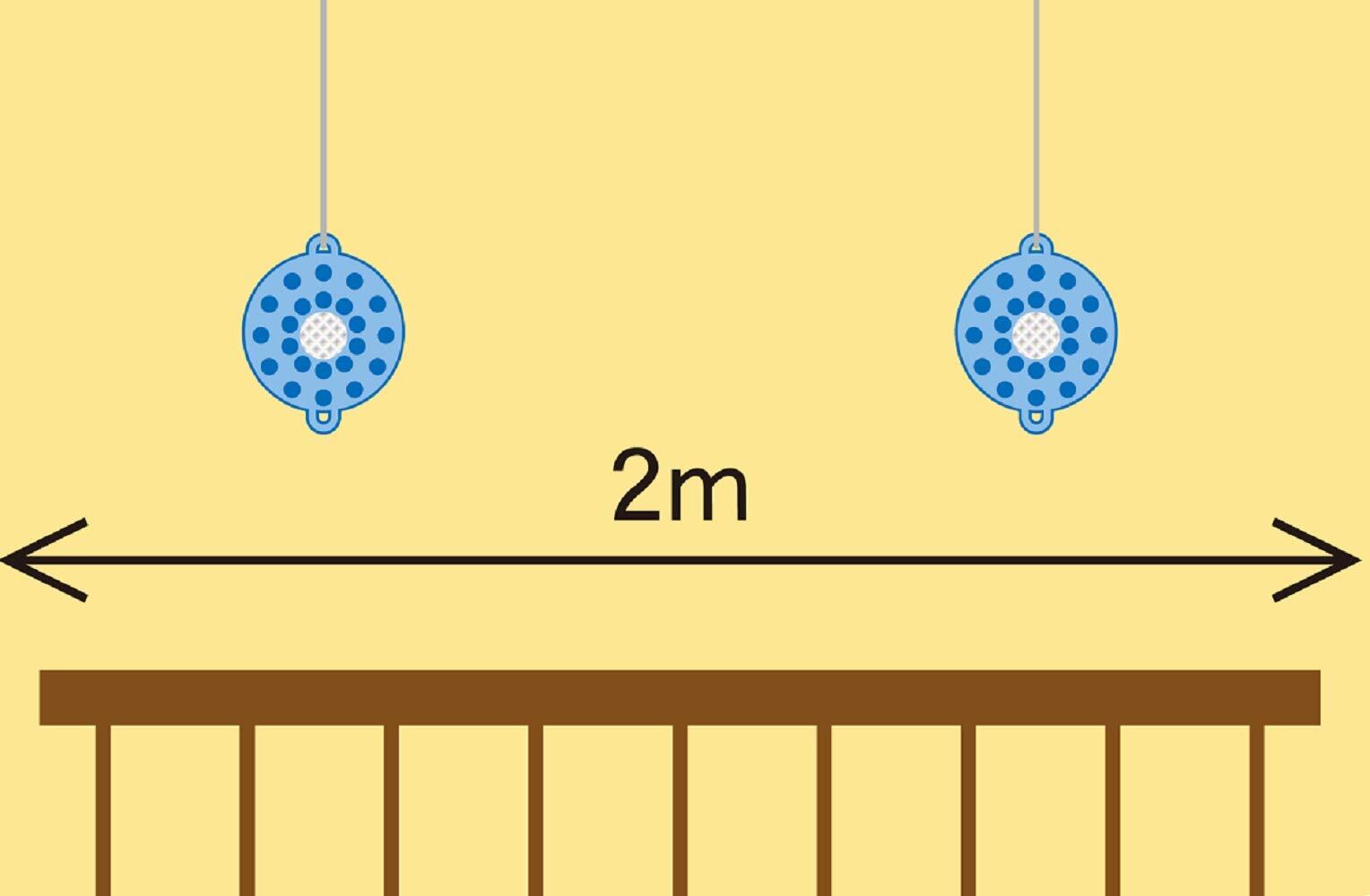 ●2m以内に2個の設置がおすすめです。