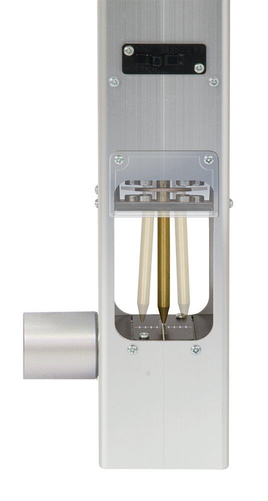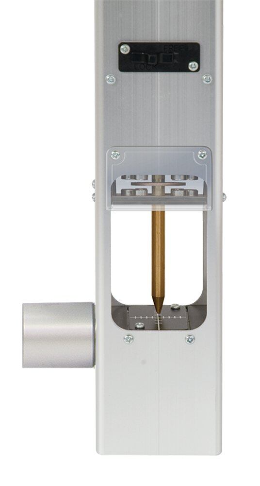 ・錘を吊っている糸が竿の内部にあるので、風がある場所でも、風の影響を受けずに鉛直測定ができる。