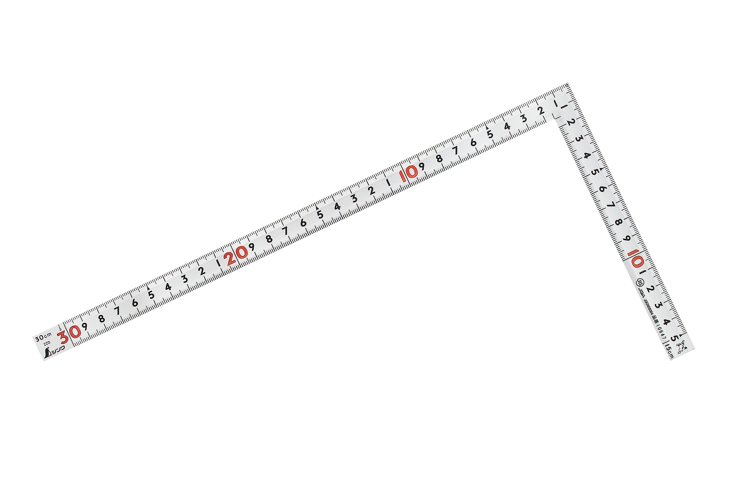 裏目盛●長枝:外目盛30cm内目盛20cm、ホゾ●短枝:外目盛15cm内目盛10cm 表示●JISマーク●赤数字入 形状:同厚 材質: ステンレス