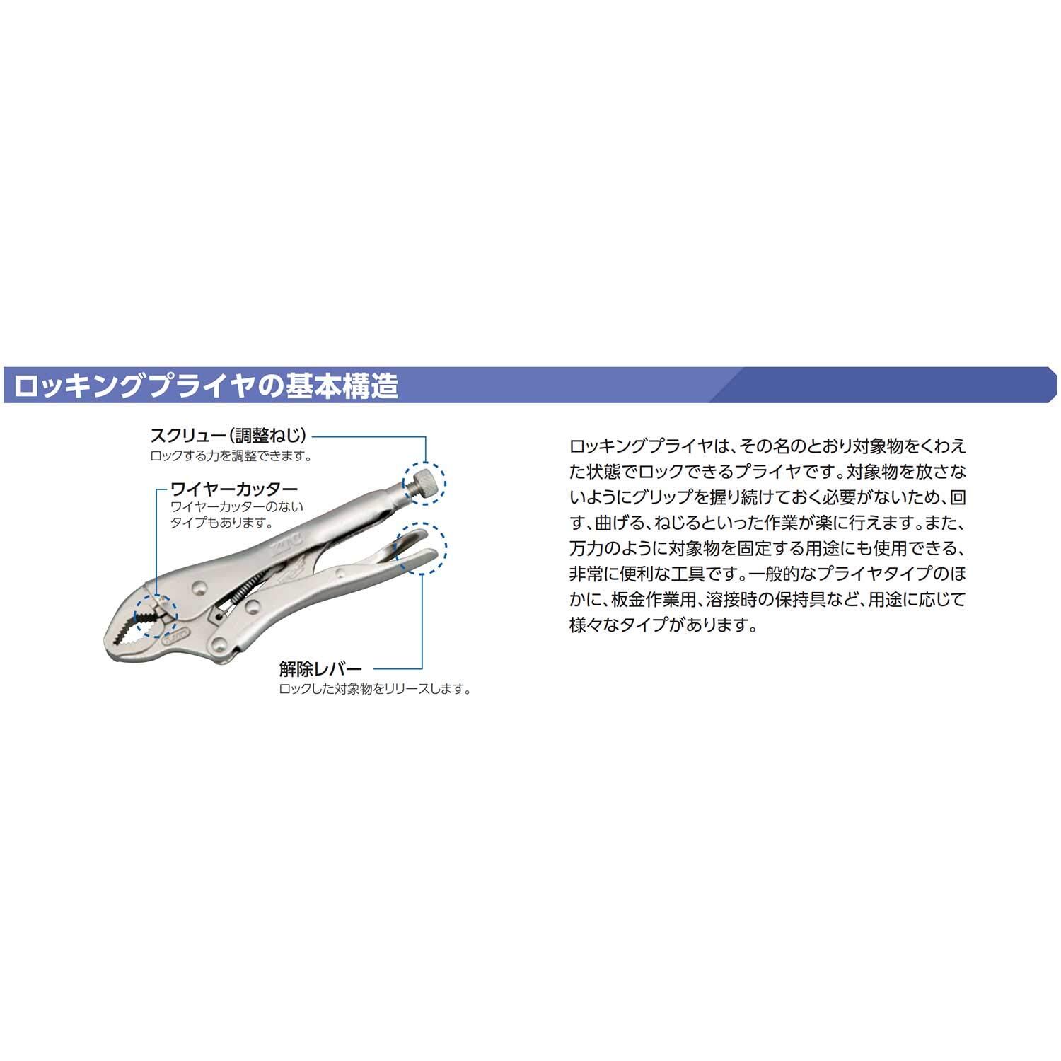 ロックを解除する時には反動に備えて、片手でロッキングプライヤを保持してください。