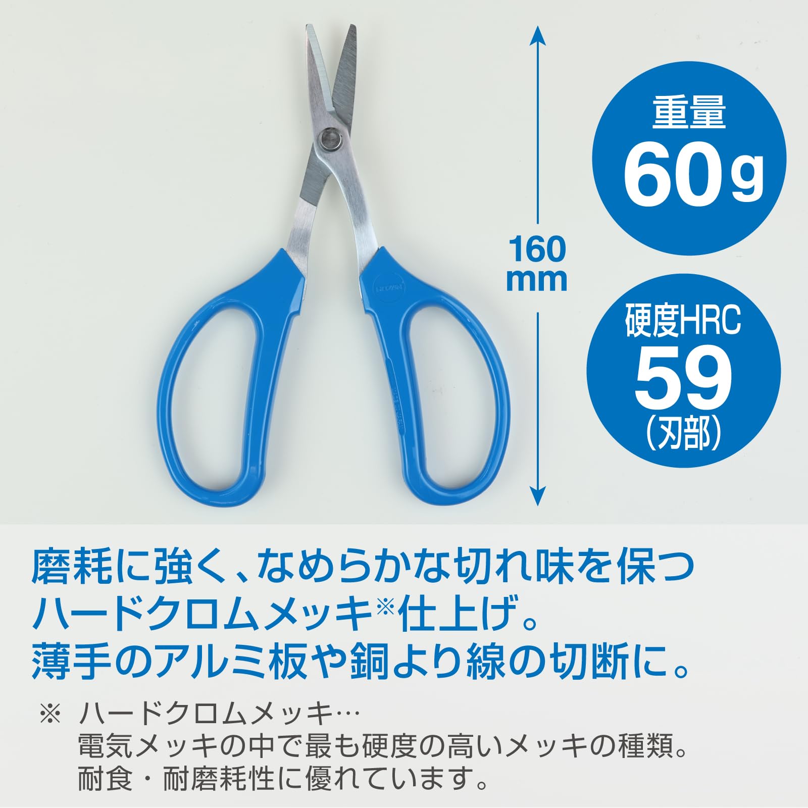 【切断能力】銅より線:2.0mm^2、アルミ板:0.7mm、同軸ケーブル:5C-2V、鉄板:0.3mm(非熱処理)【硬度HRC】刃部:59【重量】60g【用途】電気工事、配線工事、電子工作、機械修理、自転車修理、工作、洋裁、園芸
