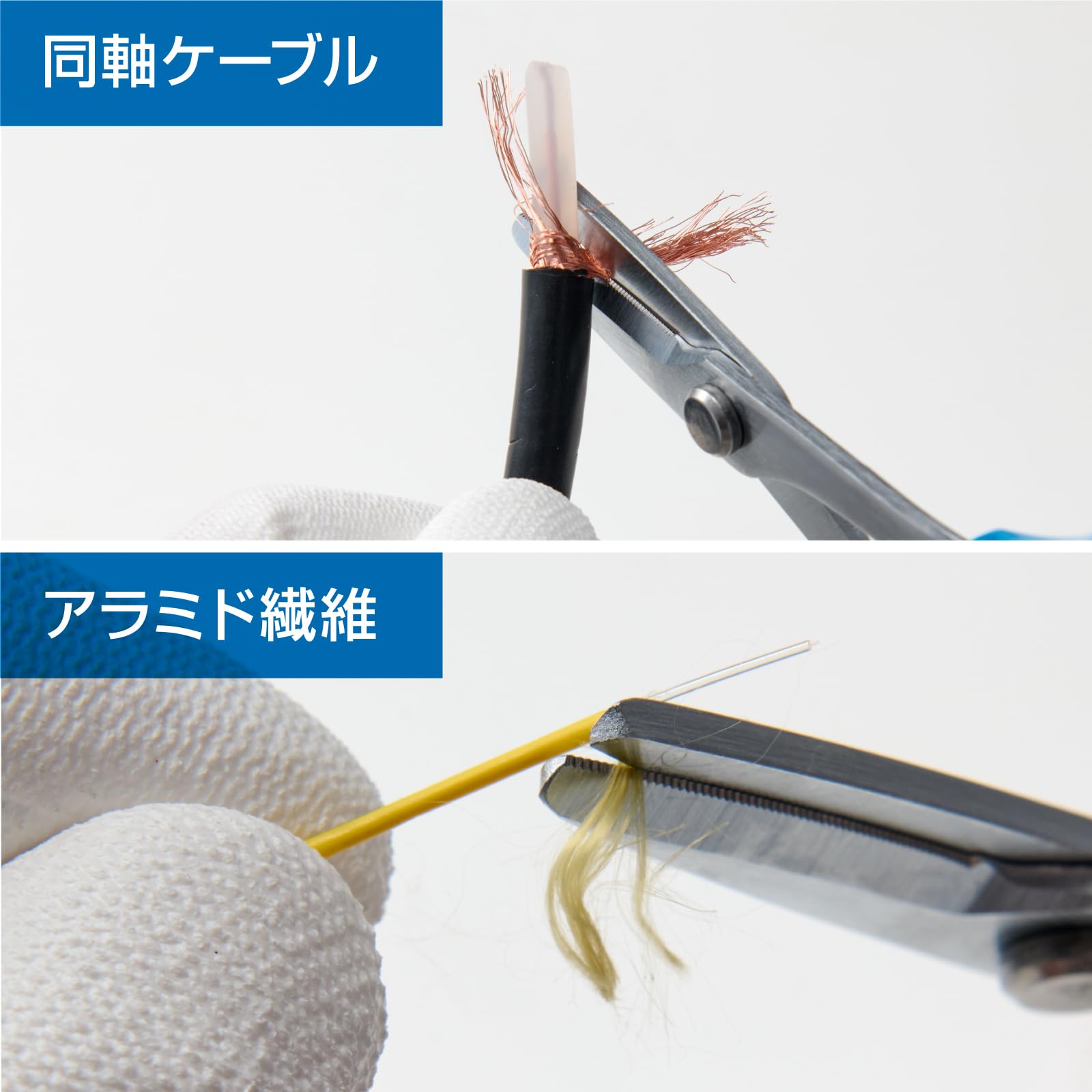 ・薄手のアルミ板や銅より線の切断におすすめの万能はさみ。光ファイバーケーブルなどに使用されているアラミド繊維の切断にも適しています。