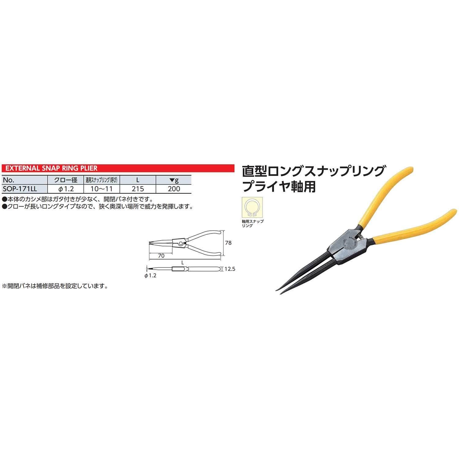 京都機械工具(KTC) 直型ロングスナップリングプライヤー軸用 Ф1.2 SOP171LL