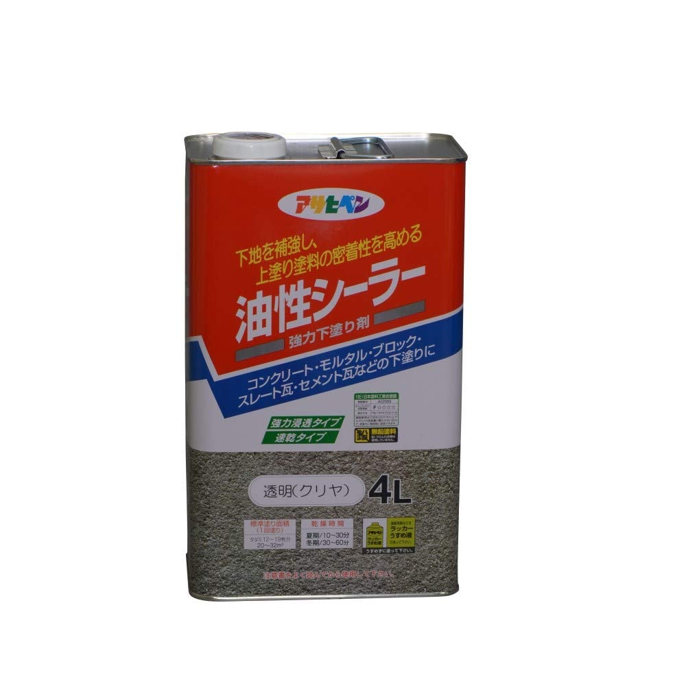 アサヒペン 塗料 ペンキ 油性シーラー 4L 透明 クリヤ 油性 シーラー 下塗り用 1回塗り 密着性向上 耐久性向上 シックハウス対策品 日本製