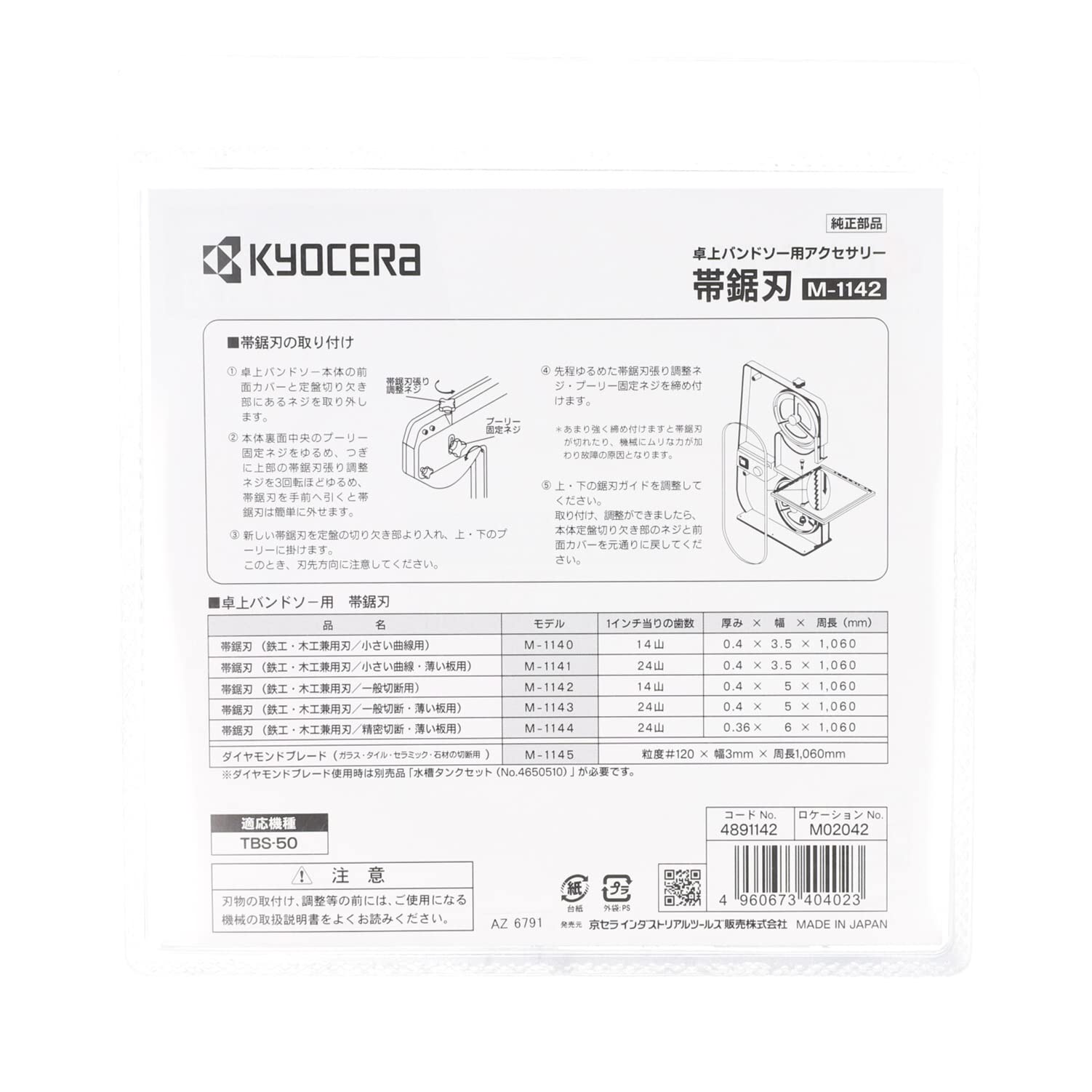 京セラ(Kyocera) 旧リョービ 帯ノコ刃 M-1142 TBS-50用 4891142