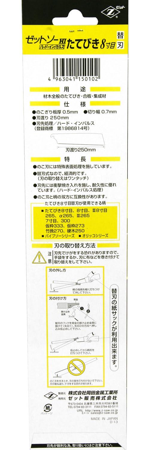 ゼット販売 Z ゼットソーたてびき 8寸目 替刃 15010