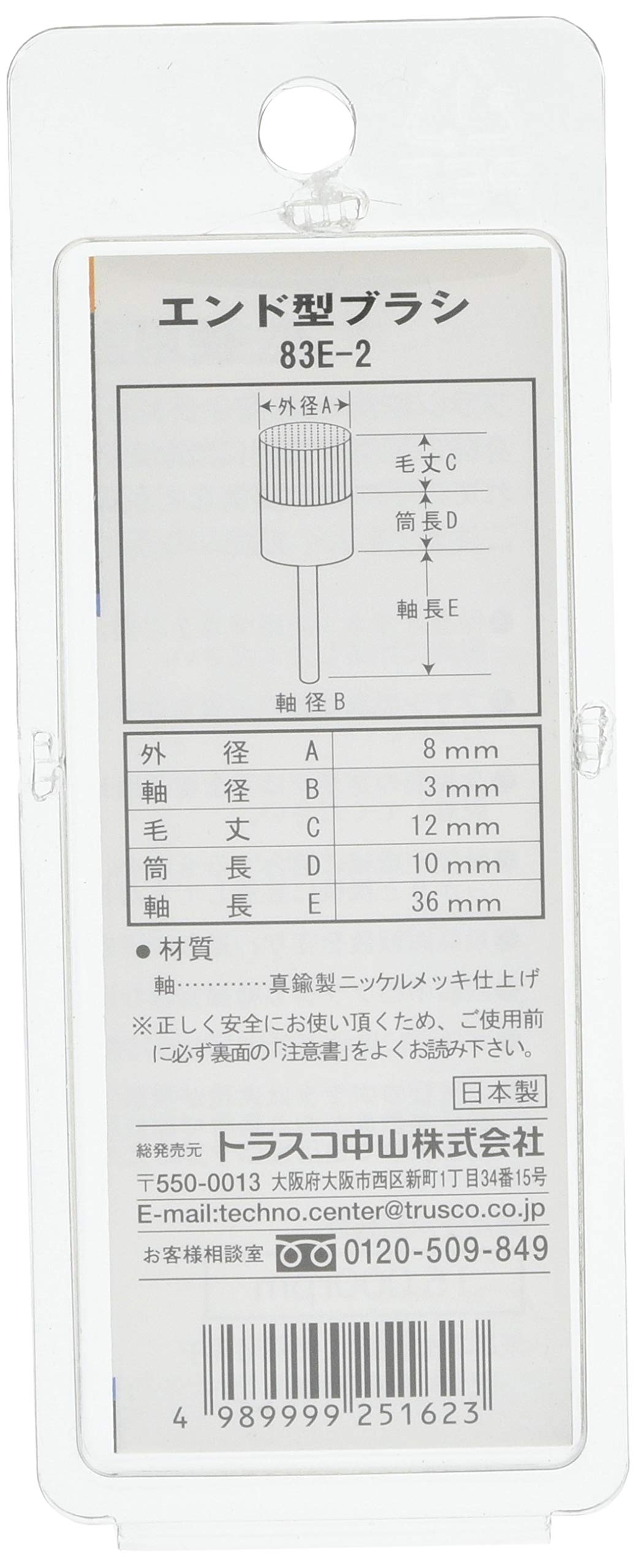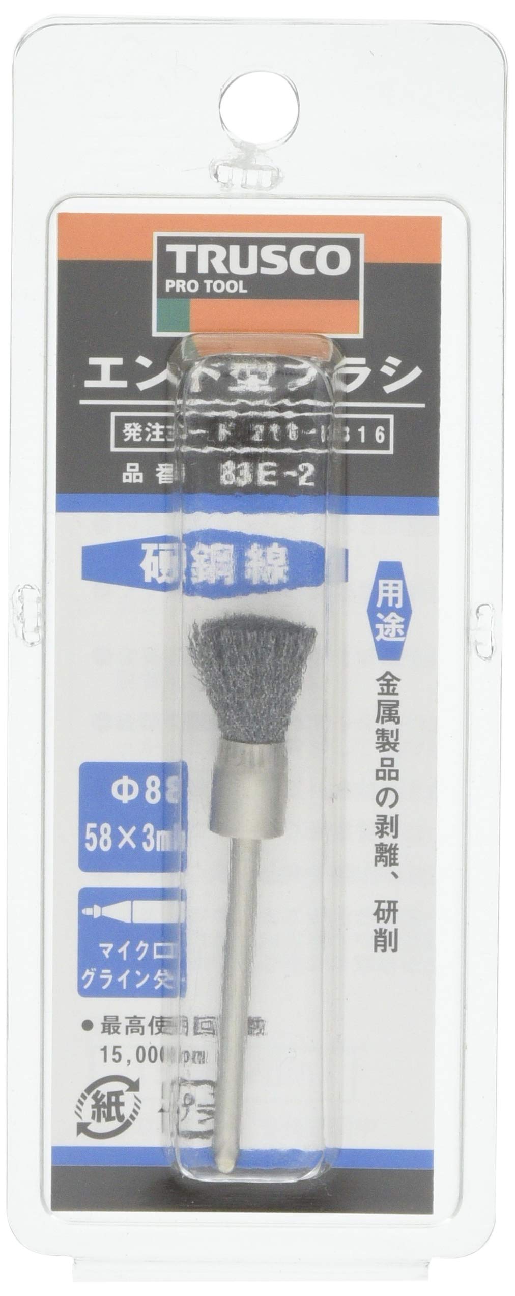 TRUSCO(トラスコ) エンド型ブラシ 硬鋼線 線0.1X筒径Φ8X軸Φ3 83E-2