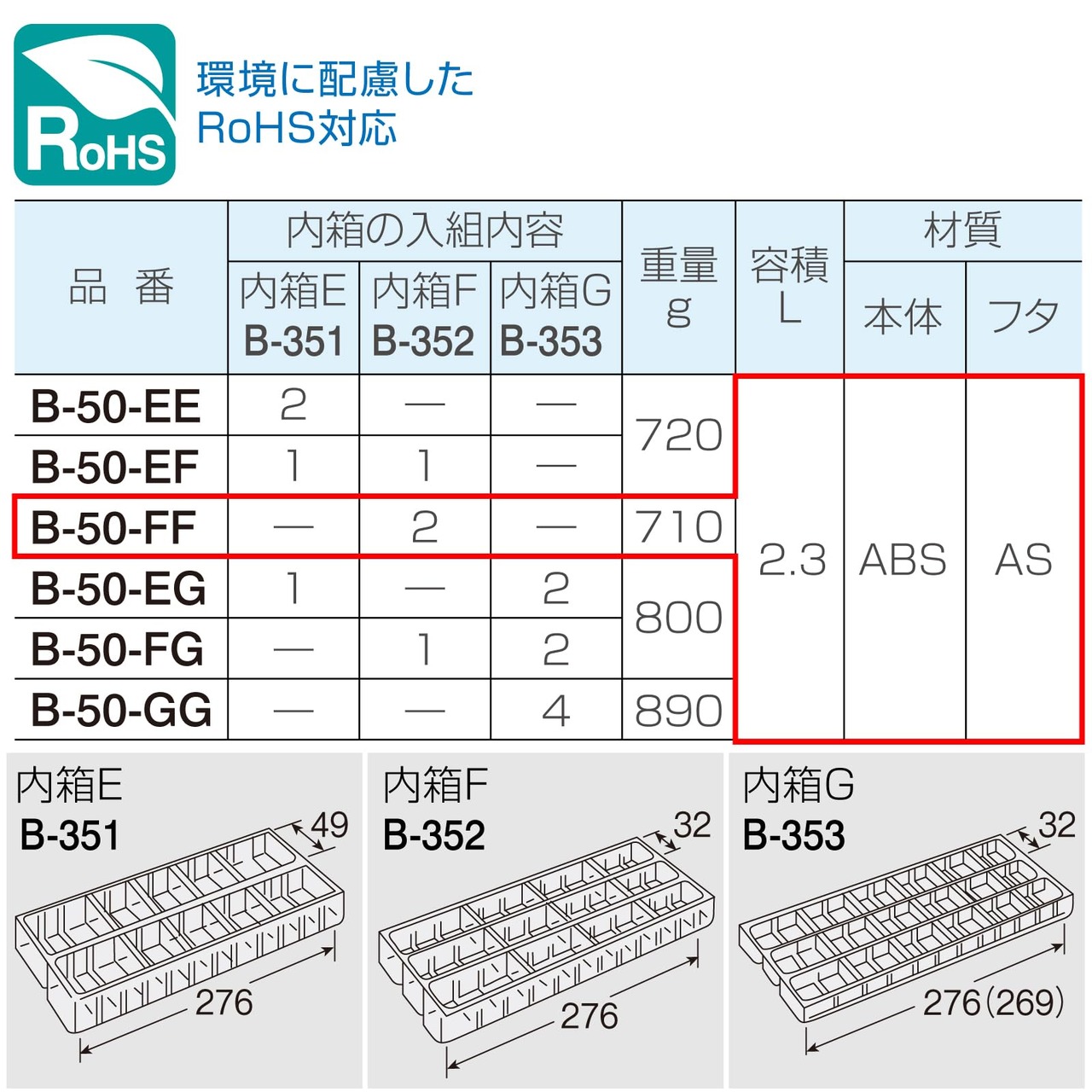 材質:ABS(本体)・AS(フタ)
