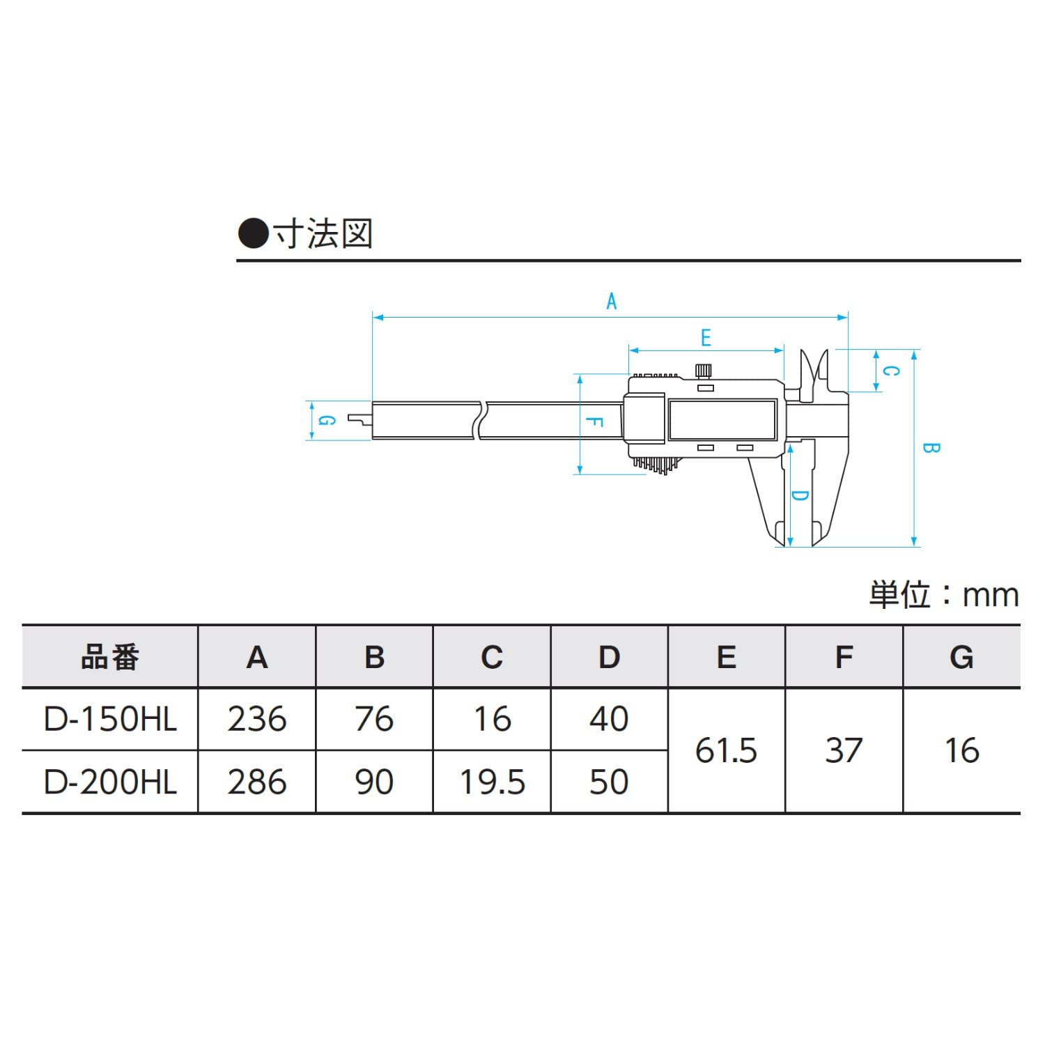 新潟精機 SK デジタルノギス 左勝手タイプ 150mm D-150HL